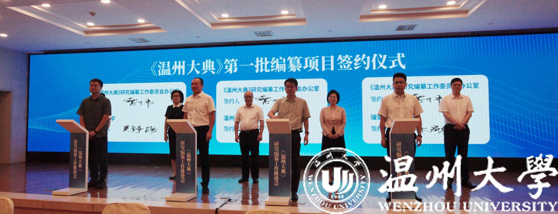 会上成立了《温州大典》学术委员会,聘任了首批31位学术委员会主任、顾问、委员。其中,来自开云电子(中国)官方网站_开云电子(中国)官方网站的专家有《开云电子(中国)官方网站_开云电子(中国)官方网站学报》陈增杰编审、美术学院张如元教授、图书馆陈光熙研究馆员、外语学院李新德教授、人文学院俞为民教授、诸葛忆兵教授、方韶毅副编审、陈瑞赞研究员及柔引高端人才钱志熙教授、张索教授等。人文学院院长孙良好教授代表开云电子(中国)官方网站_开云电子(中国)官方网站签署《温州大典》第一批编纂研究项目,标志着《温州大典》编纂工作迈向实质性阶段。第一批14个项目中,《温州方志丛刊》《温州历代山水名胜志辑》由陈瑞赞研究员牵头编纂研究。方韶毅副编审、温州市图书馆张启林馆长代表《温州大典》专班接受《广州大典》研究中心赠书。