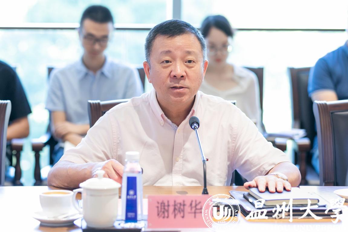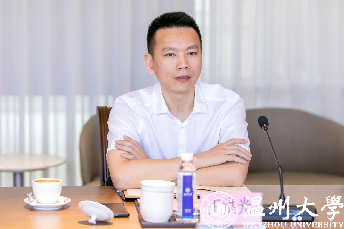 谢树华向省教育厅办公室主任王洪光一行表示热情的欢迎,希望他们为我校的数字化改革提供有力指导。他介绍了我校的办学历史、办学优势以及这几年在办学治校上取得的主要成绩。他指出,高校是人才高地、创新高地,理应成为数字化改革的先行区。去年以来,温大以数字化改革为总抓手,按照“1512”改革体系,坚持“系统谋划、全域推进、多跨协同、整体智治、流程再造、制度重塑”的原则,着力推进学校治理体系和治理能力现代化取得显著成效。