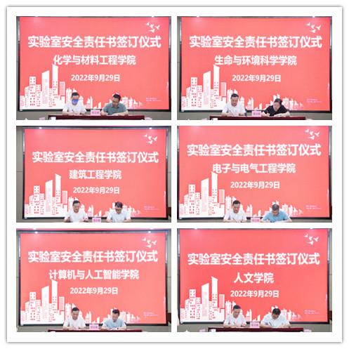 为进一步健全与落实实验室安全责任体系,会上举行了实验室安全责任书签订仪式,潘玉驹代表学校与各学院签订了实验室安全责任书。