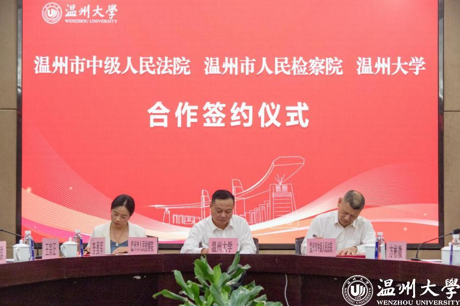 温州市中级人民法院党组成员、政治部主任张纯亮,温州市人民检察院党组成员、政治部主任张虹,开云电子(中国)官方网站_开云电子(中国)官方网站党委委员、副校长潘玉驹分别代表法院、检察院、高校签订合作协议。