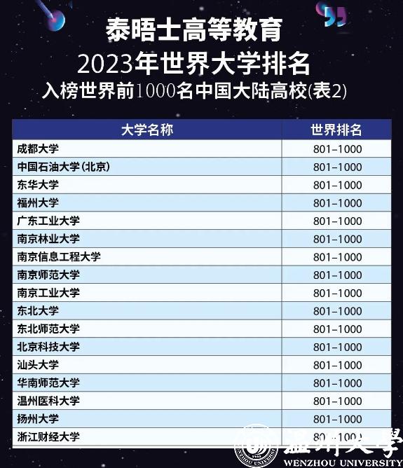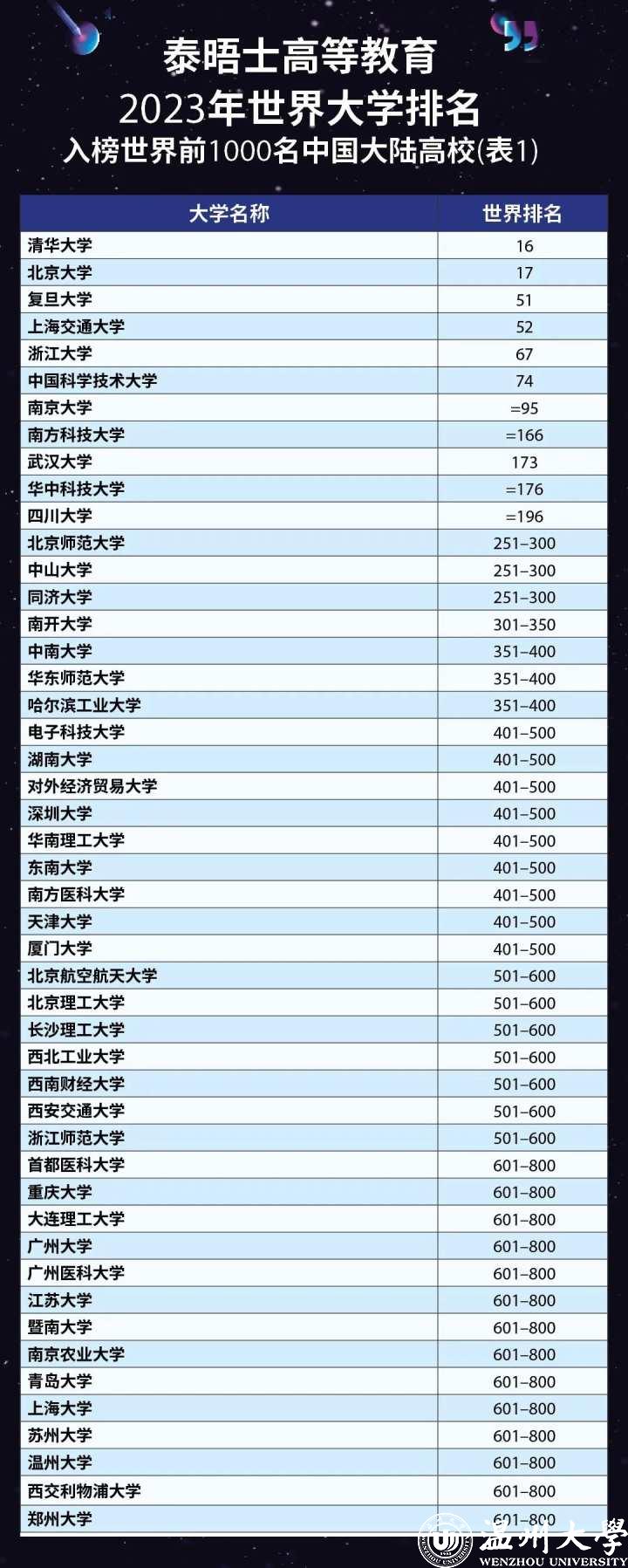 中国大陆共有95所高校上榜: 清华大学排名亚洲第一,北大紧随其后;浙江省有5所高校进入该榜单前1000名。今年,开云电子(中国)官方网站_开云电子(中国)官方网站在该项榜单中世界排名在601—800区间,国内排名在35—48区间,在浙江省上榜高校中仅次于浙江大学和浙江师范大学,连续三年排名省内第三位。