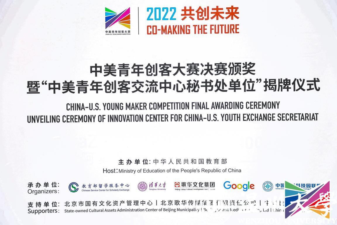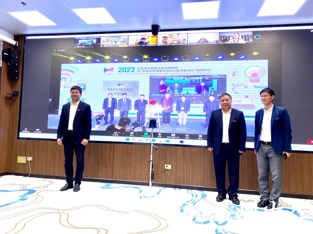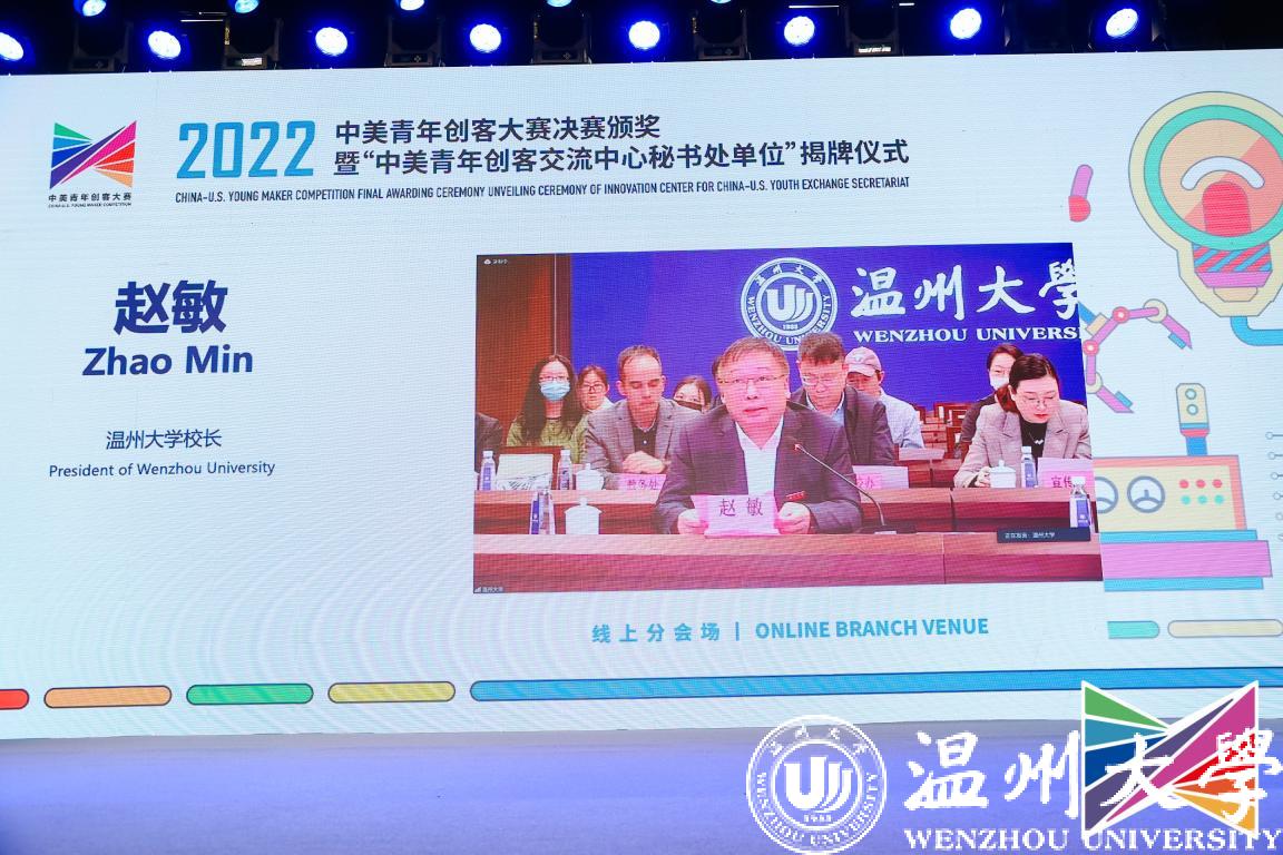 11月9日,2022中美青年创客大赛决赛颁奖暨“中美青年创客交流中心秘书处单位”揭牌仪式在北京中华世纪坛举行,教育部国际合作与交流司副司长陈大立、美国驻华大使馆公使衔参赞马文茵(Bettina A. Malone)、北京市委宣传部副部长张劲林、教育部留学服务中心副主任李晓哲等领导出席活动。活动在开云电子(中国)官方网站_开云电子(中国)官方网站设立线上分会场,校长赵敏、党委副书记庄兴忠出席,党校办、宣传部、创新创业学院等部门学院相关负责人及温州肯恩大学代表参会。