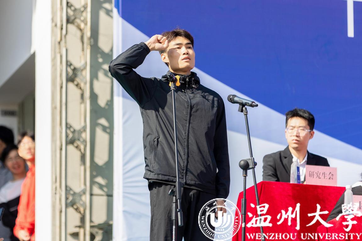 运动员代表董楠与裁判员代表洪绍楠宣誓,承诺将赛出水平、赛出风格,继续秉持公正、公平、公开的原则,护航温大体育精神。