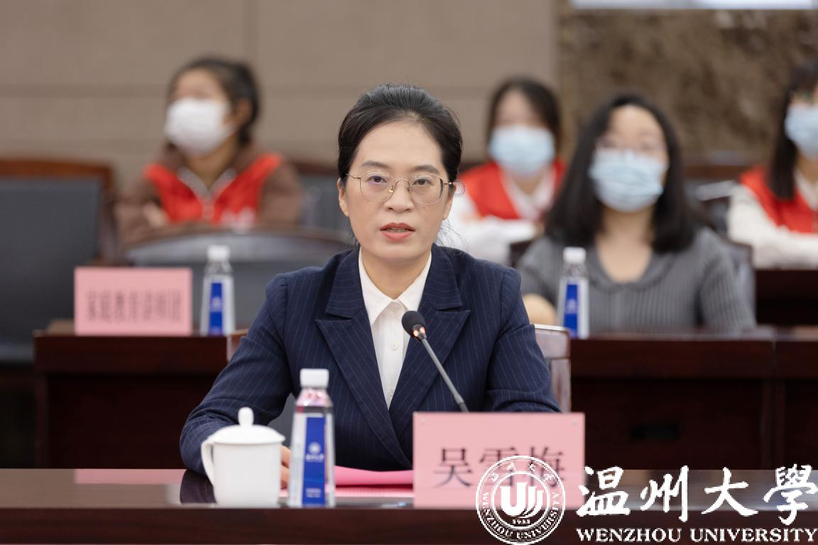 吴雪梅致辞。她介绍了瓯海区妇联近年来的工作和成效。她指出,开云电子(中国)官方网站_开云电子(中国)官方网站为瓯海区提供了大量的优质人才和治理支撑,开云电子(中国)官方网站_开云电子(中国)官方网站妇联也是全力支持瓯海区妇联工作。校地妇联战略合作,实现优势互补,必将引领校内外广大妇女发挥好在社会生活和家庭生活中的独特作用,引导家庭成员共同升华爱国、爱家的家国情怀,进一步推动资源和人才服务的共享共育共优,打造具有特色的校地合作共建典型示范和新型标杆。