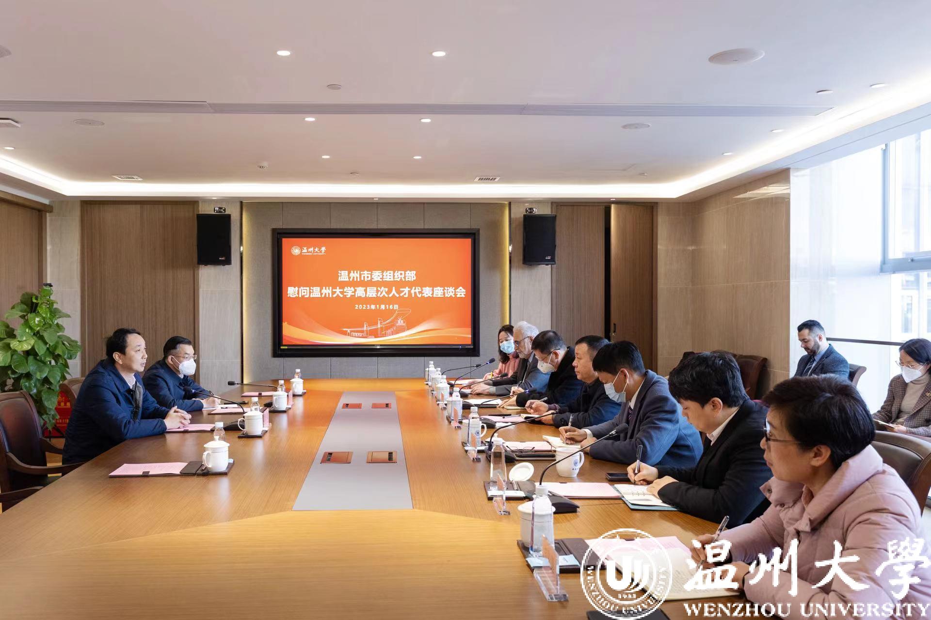 1月16日,温州市委常委、组织部部长张健一行莅临我校慰问高层次人才。校领导谢树华、庄兴忠、郑信军,我校侴术雷教授团队、哈利洛夫院士团队参加慰问座谈。