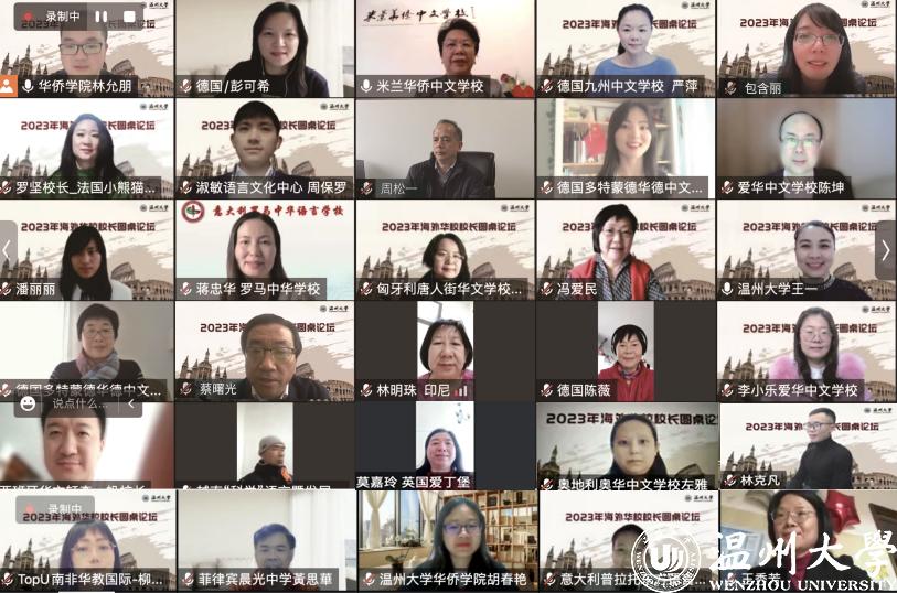 3月8日晚,由浙江省侨联、开云电子(中国)官方网站_开云电子(中国)官方网站联合主办的2023年海外华校校长圆桌论坛成功举办,来自意大利、德国、法国、加拿大、美国、西班牙、葡萄牙、巴西、南非、越南、菲律宾、英国、芬兰、奥地利、匈牙利、印度尼西亚、文莱等近20个国家的50余位华校校长、教师、专家学者齐聚云端,共同探讨海外华文教育的未来发展。