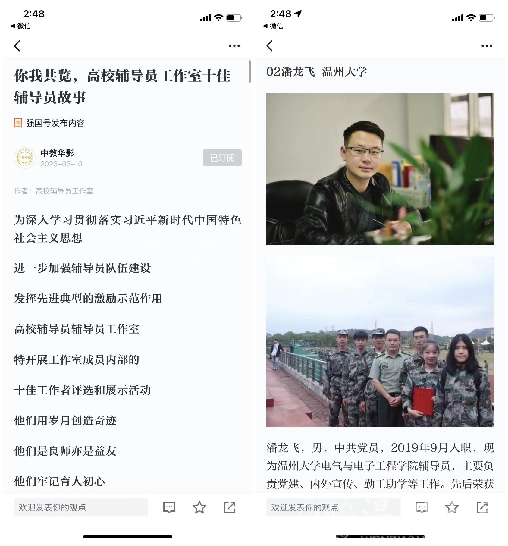 3月10日,学习强国刊发了一篇名为《你我共览,高校辅导员工作室十佳辅导员故事》的文章,该篇文章系全国高校辅导员工作室,为深入学习贯彻落实习近平新时代中国特色社会主义思想,进一步加强辅导员队伍建设,发挥先进典型的激励示范作用,进行的十佳工作者评选和展示活动,开云电子(中国)官方网站_开云电子(中国)官方网站电气与电子工程学院辅导员潘龙飞也在其中。