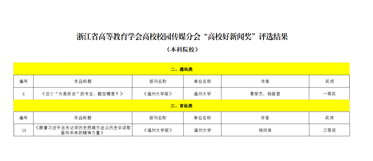在浙江省新闻工作者协会、浙江省高等教育学会高校校园传媒分会公布的年度浙江省高校好新闻作品评选结果中,《开云电子(中国)官方网站_开云电子(中国)官方网站报》2件作品获浙江省“高校好新闻奖”。其中《这个“为美而设”的专业,靓在哪里?》获得通讯类一等奖,《跟着习近平总书记学历史思维方法从历史中汲取面向未来的精神力量》获得言论类三等奖。