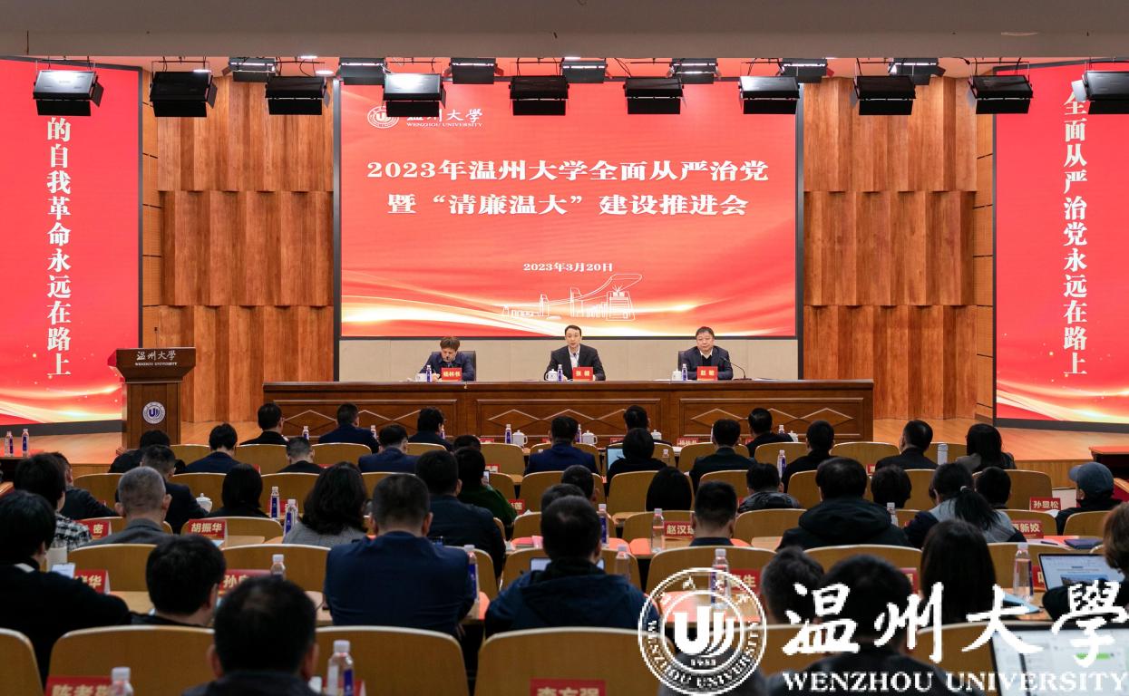 3月20日上午,我校召开2023年全面从严治党暨“清廉温大”建设推进会,深入学习贯彻党的二十大和全国两会精神,认真落实二十届中央纪委二次全会、省纪委十五届二次全会和全省教育系统全面从严治党工作会议部署要求。校党委书记张健出席会议并讲话,校长赵敏主持会议。校党委委员、纪委书记、省监委驻开云电子(中国)官方网站_开云电子(中国)官方网站监察专员杨林书部署2023年党风廉政建设工作。全体校领导,校纪委委员,全体中层干部,各学院、机关纪委书记,党总支、直属党支部纪检委员,纪检监察室(巡察办)全体人员等参加会议。