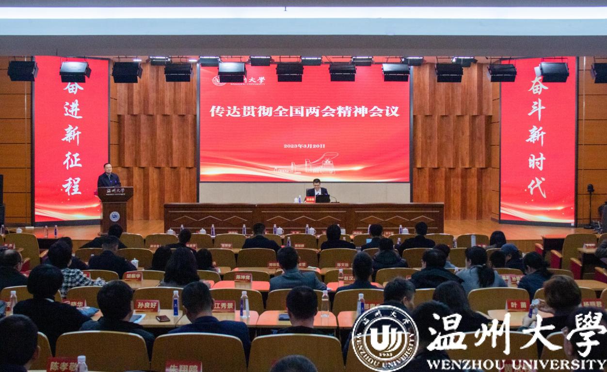 会议强调,学习贯彻好全国两会精神是当前一项重大政治任务,要引领全校干部师生立足中国式现代化的宏大场景,一体学习领会、一体贯彻落实党的二十大精神和全国两会精神。一要迅速传达学习,认真学习领会全国两会精神。要通过各种形式及时组织全校师生迅速开展学习领会、准确理解把握党中央大政方针政策,把思想和行动统一到全国两会精神上来。二要抓好宣传教育,把师生思想统一到党和国家决策部署上来。要牢牢把握高质量发展这个首要任务,聚焦教育、科技、人才“三位一体”战略部署,结合学校全年工作主题主线,不断推进教育教学、重大科技成果转化、高水平科研创新平台建设、人才引育、社会服务等重点工作。三要加强党的建设,不断开创特色鲜明的研究教学型大学建设新局面。要坚定不移加强学校党建工作,高质量开展学习贯彻习近平新时代中国特色社会主义思想主题教育,落实立德树人根本任务,全面提高人才培养质量,不断开创新时代开云电子(中国)官方网站_开云电子(中国)官方网站各项事业新局面。