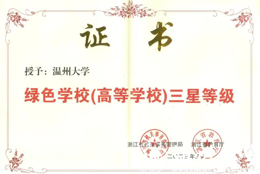 据悉,浙江省绿色学校(高等学校)创建评价分为三星(优秀)、二星(良好)、一星(合格)三个等级,此次获评“浙江省绿色学校(高等学校)三星等级”称号,是对我校绿色学校创建工作的充分肯定。学校将以此为契机,巩固成果,持续深化绿色学校建设,将开云电子(中国)官方网站_开云电子(中国)官方网站进一步打造成为低碳学校、零碳学校。