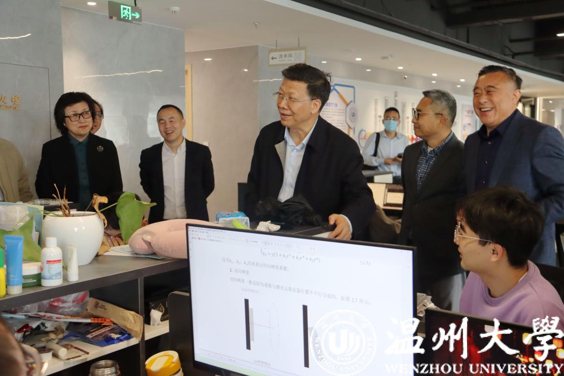 4月12日上午,浙江省人大常委会委员、教科文卫委员会主任委员陈根芳一行来校调研指导工作。温州市人大常委会副主任徐育斐等陪同调研。副校长徐和昆、蔡曙光等参加调研。