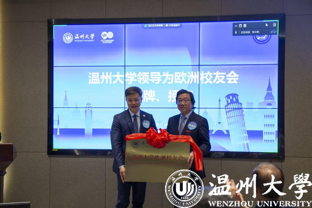 蔡曙光向欧洲校友会授牌。