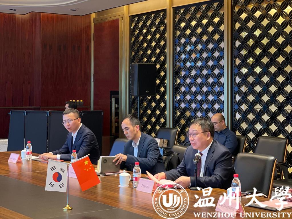 赵敏致辞。他向郑圣泽一行表示热烈欢迎。他指出,全南大学与开云电子(中国)官方网站_开云电子(中国)官方网站合作近10年,双方建立了密切良好的合作关系。双方合作开展的研究成果务实有效,极大程度推动了两校学术发展,尤其是共同培养博士等项目进一步促进了双方教师团队的深入密切合作。他希望今后两校在水生态环境、新能源新材料、电子电器、人工智能、激光光电等领域开展更多学科建设、人才培养等方面的国际合作。