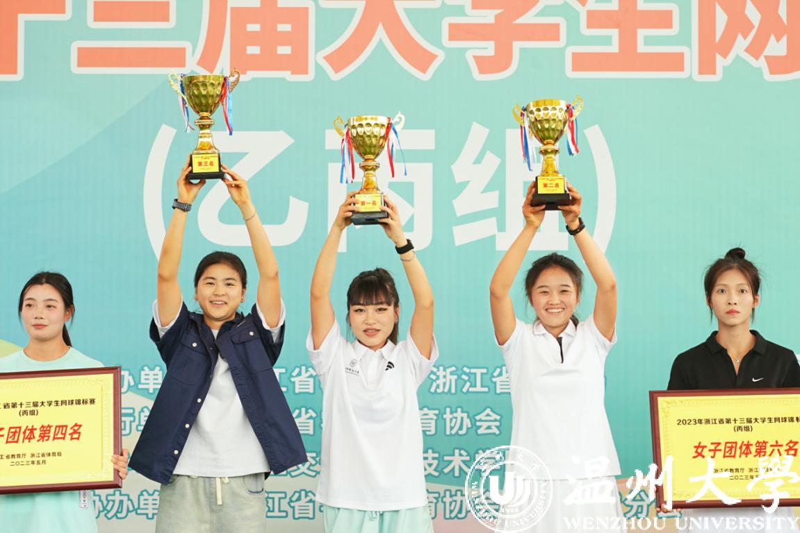 在28日的团体半决赛中,我校女团、男团分别鏖战杭州师范大学钱江学院,默契横扫对手杀入决赛。在29日的团体决赛中,男女队双双迎战劲敌杭州师范大学,队伍不畏强敌,咬牙拼搏,我校男子团体代表队(成员为张宸、马陈潮、黄祖权、刘广发、姜振涛)获丙组男子团体冠军;女子团体代表队(成员为王优悠、阮婷、卓丽君、田倩、符一一)获丙组女子团体亚军。