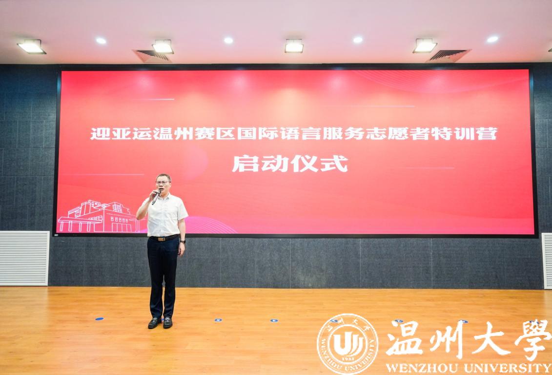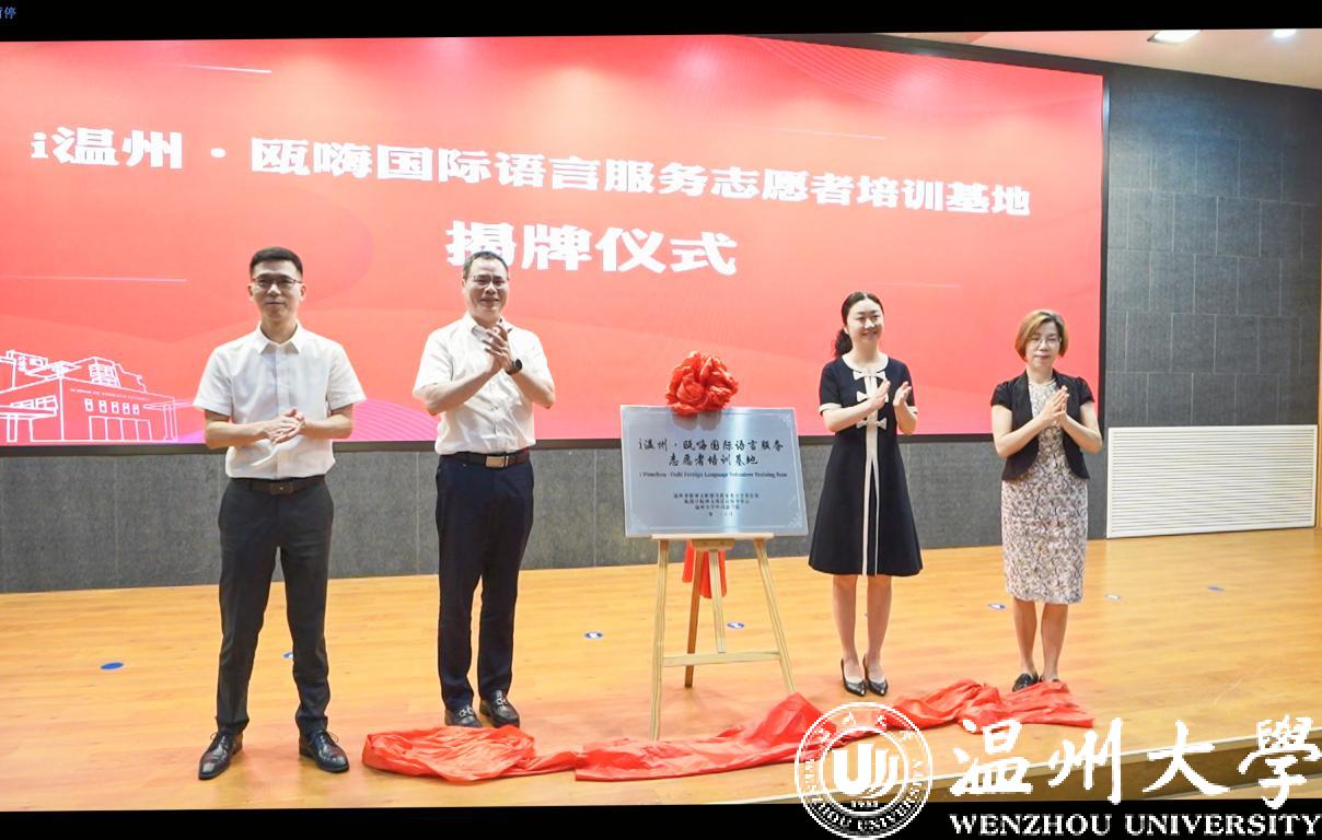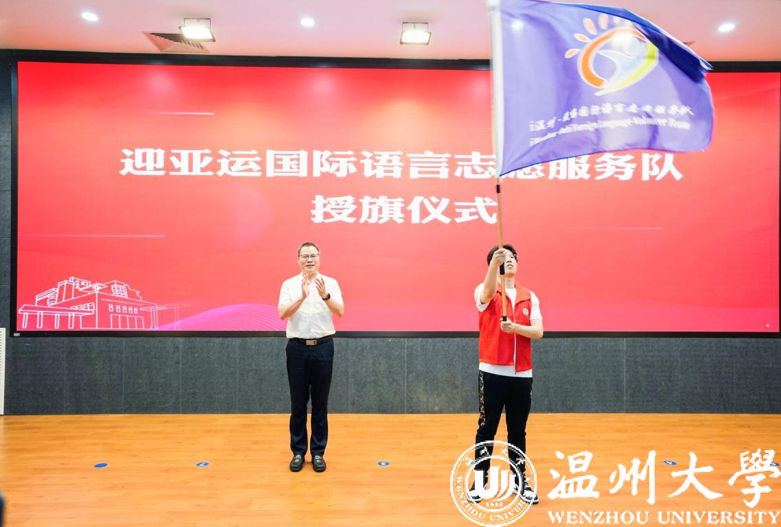 为迎接亚运会这一国际体育盛会的召开,6月7日,i温州·瓯嗨国际语言服务志愿者培训基地揭牌暨迎亚运国际语言志愿服务队成立仪式在我校举行。开云电子(中国)官方网站_开云电子(中国)官方网站党委副书记庄兴忠,温州市委宣传部副部长、市文明中心主任沈林杰,瓯海区委常委、宣传部长孟晓晨,温州市文明中心志愿服务处处长麻文静,瓯海区文明中心主任李乐、开云电子(中国)官方网站_开云电子(中国)官方网站团委、外国语学院负责人等出席活动。