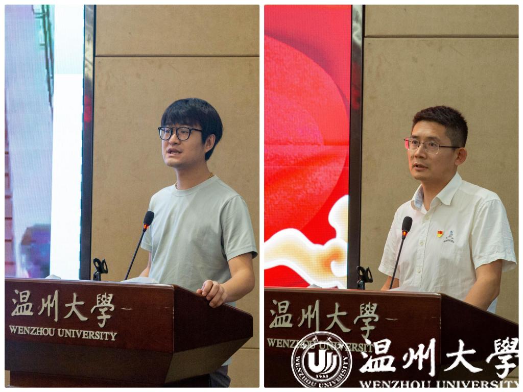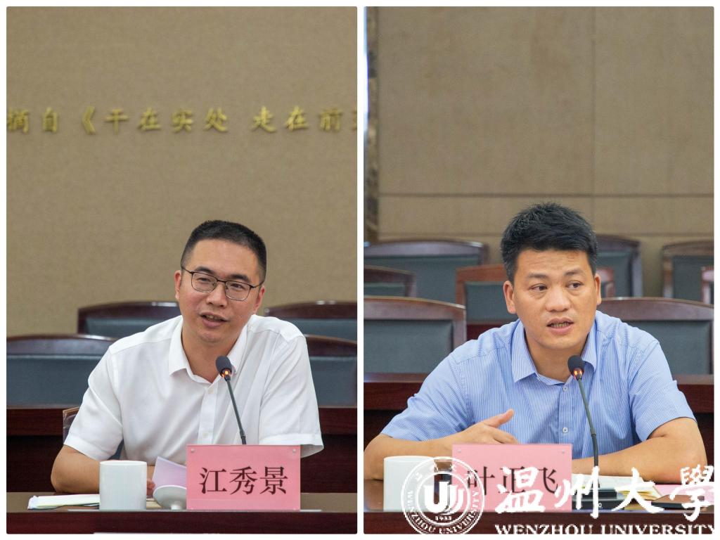 与会人员集体观看《国内外乡村建设瞭望》《瓯越乡村,奔向未来》等专题片。服务团队负责人代表作典型发言,计算机学院李毅博士重点介绍了“云上村寨”项目的实施情况,分享了团队在服务平阳、文成、泰顺等地民族文化数字化保护过程中的工作模式和工作成效。生环学院苏来金博士介绍羊栖菜研究所团队服务洞头“两菜一鱼”,服务苍南冷冻冷链产业以及温州地区预制菜等方面的服务成果。人文学院、美术学院党组织负责人作交流发言。江秀景从发动、立项、对接、保障等方面介绍人文学院组织落实“双百双千”行动的做法、取得的进展及未来的设想。叶正飞分享美术学院服务乡村振兴的工作基础和实施“双百双千”行动的工作思路。