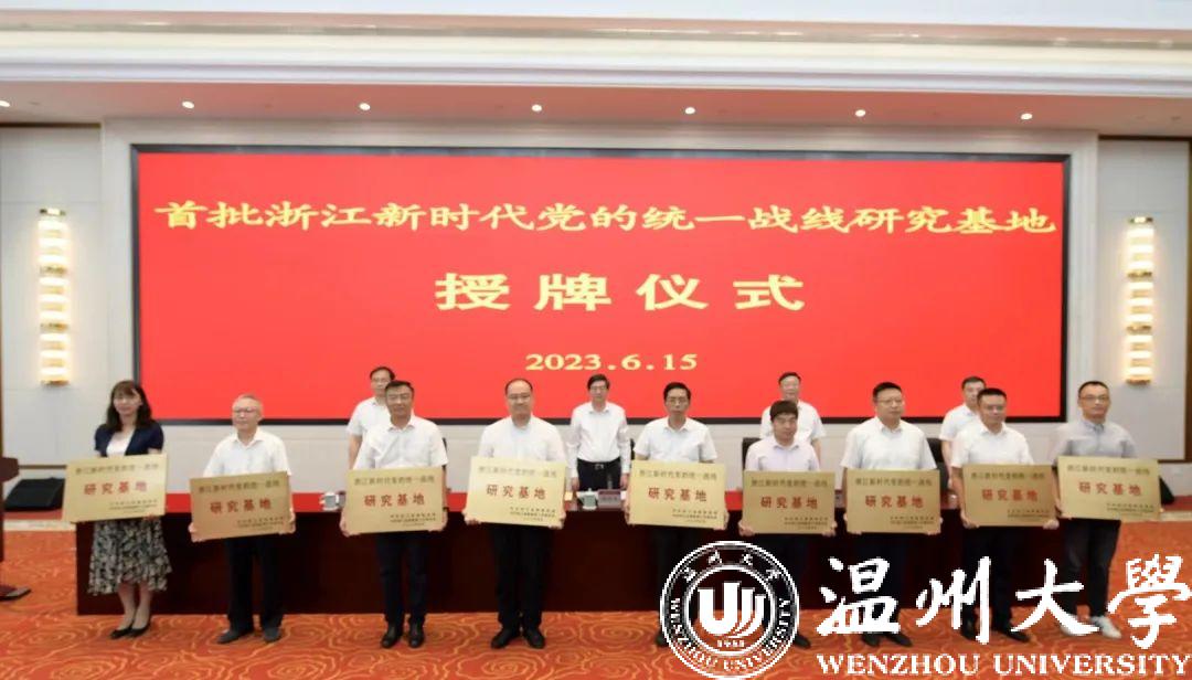 省委常委、统战部部长邱启文,省委统战部副部长、省社会主义学院党组书记吴振宇,省委统战部副部长谢辉,省教育厅总督学舒培冬等领导为浙江大学等首批9家浙江新时代党的统一战线研究基地进行授牌。全省各高校党委统战部部长、全省各市党委统战部分管副部长参加授牌仪式。