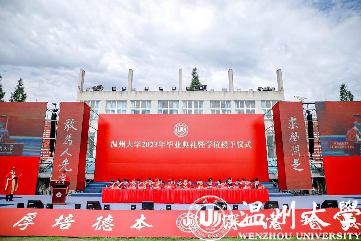 “大哉师道天下尊,承往哲兮启后人。厚培德本,深濬智源,学成致用教化淳……”全体师生齐唱校歌。在歌声中,毕业生正式告别他们在温大度过的青春岁月,迈向更加广阔的人生舞台。在新时代的浪潮中,全体温大毕业生必将继续光大温大精神,奔赴下一场山海,开启人生新的璀璨篇章。