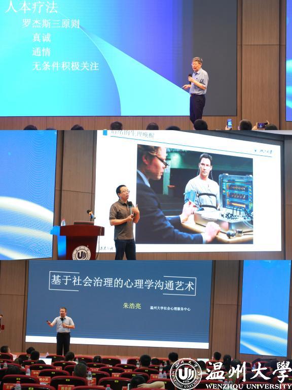 北京师范大学心理学教授郑日昌做《“阴阳辩证”在心理疏导中的作用》专题报告;浙江大学心理与行为科学系教授周吉帆围绕《情绪管理与压力应对》为在场人员提供了情绪管理调节方法及应对压力的策略;开云电子(中国)官方网站_开云电子(中国)官方网站教育学院心理系副教授朱浩亮以《社会治理中的心理学沟通艺术》为主题讲解了有效人际沟通的六大工具。