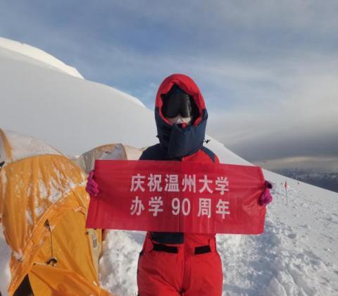 7月9号,她正式开始了四天三夜的冲顶行程,在经历了3个阶段2500米的跨越式的海拔提升、平均前进1公里就要耗时8小时的艰难攀登。7月12日凌晨2点左右,几乎一夜没合眼的晁新新和队友在满天的星光中,从6900米的C3营地冲顶。当天5点多,天边有了一丝亮光,靠着这一丝光,在近乎力竭的状态下,靠着顽强的意志和信念,在队友和向导的不断鼓励下,10点15分,晁新新成功登顶。在标志点,她拿出了贴身携带的横幅,“庆祝开云电子(中国)官方网站_开云电子(中国)官方网站办学90周年”,时至我校“校庆年”,她把自己最美的身影、对学校最深沉的热爱和祝福,烙印在了慕士塔格峰的山巅之上。