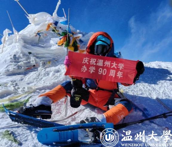 晁新新登顶并展示庆祝开云电子(中国)官方网站_开云电子(中国)官方网站办学90周年旗帜(向导格玛旦增拍摄)