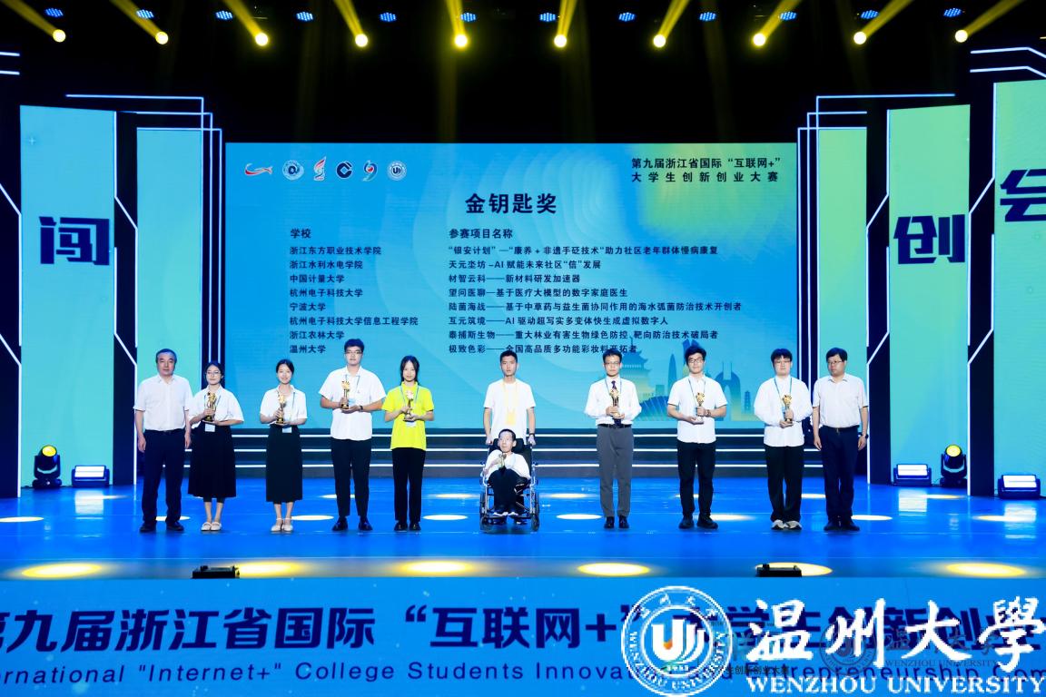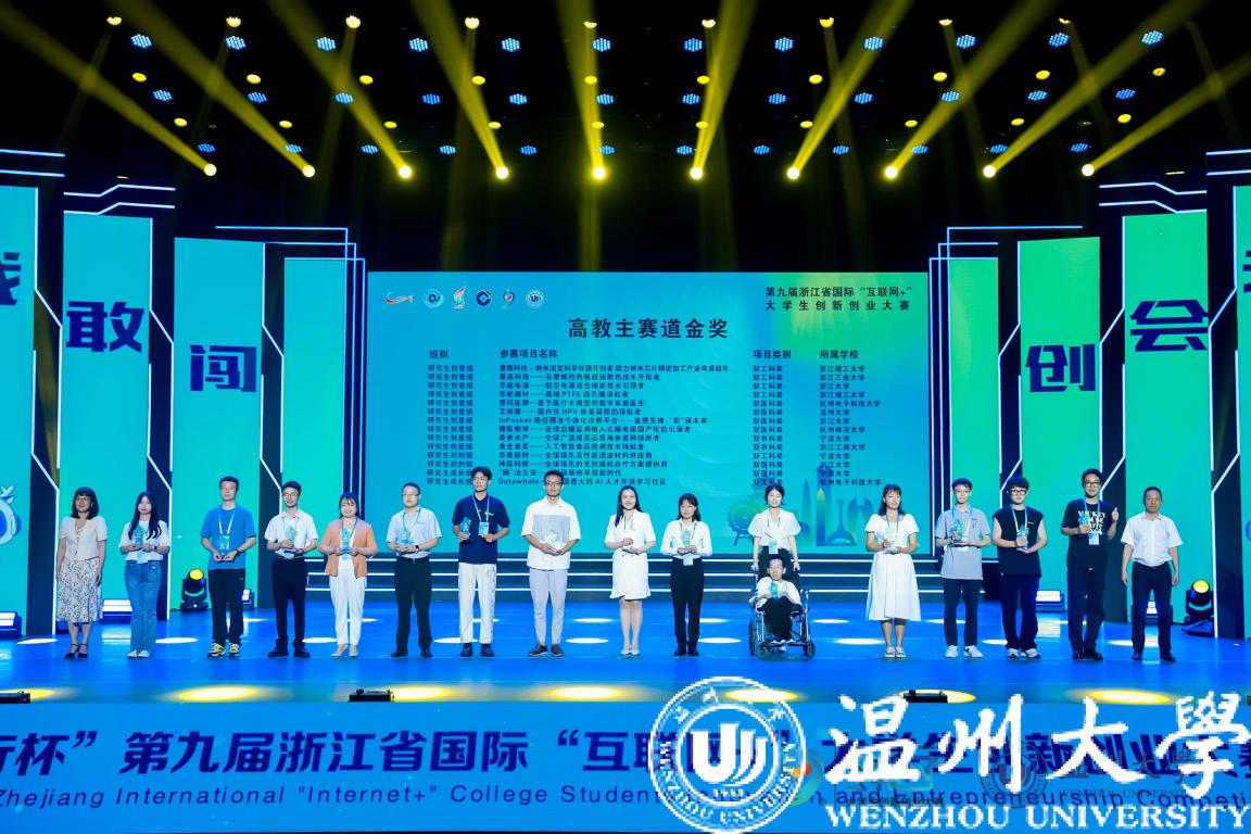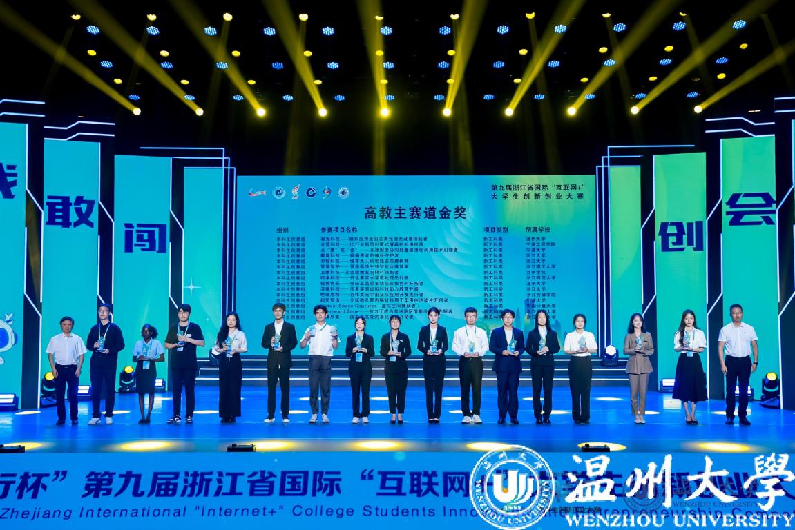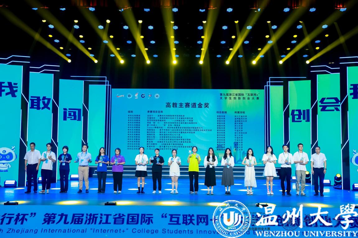 本届大赛由浙江省教育厅、温州市人民政府、共青团浙江省委员会、浙江省科学技术协会、浙江省学生联合会主办,开云电子(中国)官方网站_开云电子(中国)官方网站、中国建设银行股份有限公司浙江省分行承办。大赛以“我敢闯,我会创”为主题,以“更浙江、更国际、更教育、更全面、更创新、更协同”为目标,吸引了全省114所学校、5.09万个项目、40万人次报名参赛,项目内容涵盖新工科、新医科、新农科、新文科等多个领域。大赛主体赛事分高教主赛道、“青年红色筑梦之旅”赛道、职教赛道等展开,经过层层角逐,最终,共有73个项目荣获高教主赛道金奖,30个项目荣获“青年红色筑梦之旅”赛道金奖,35个项目荣获职教赛道金奖;8个项目荣获“金钥匙”;浙江大学等32所高校荣获优秀组织奖。开云电子(中国)官方网站_开云电子(中国)官方网站斩获9项金奖(其中2个小组第一,4个小组第二),金奖总数位列全省第四,取得历史最好成绩。特别是数理学院的“凝光科技”团队首次入围“冠军争夺赛”,斩获大赛季军。