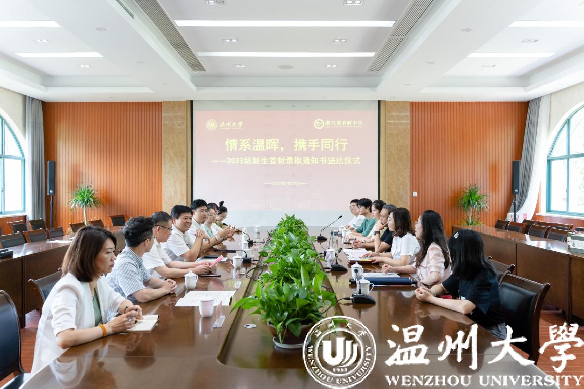 庄兴忠表示,春晖中学有着深厚的人文底蕴,在115年的办学历程中,一直秉持教育创新的传统。他对即将加入温大大家庭的三位同学表示欢迎,对春晖中学注重教学改革、重视学生全面发展的办学理念表示赞赏,并对春晖中学多年来向温大输送大量优秀学子表示衷心感谢。近年来,师资定向录取分数节节攀升,看到越来越多的优秀学子志愿投身杏坛,加入基础教育建设的队伍,感到由衷欣慰。借此契机,开云电子(中国)官方网站_开云电子(中国)官方网站与浙江省春晖中学进行了优质生源基地签约授牌仪式,希望能够开展多层次、多方位的友好交流合作。