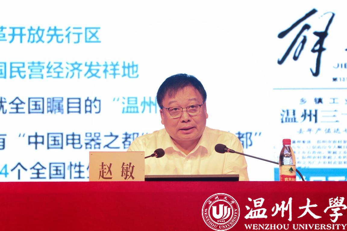 赵敏从“千年文脉”“商行天下”“重才爱才”三个方面回溯温州的千年历史变迁,强调对于青年大学生来说,当下是恰逢其时、正当其势,要刚毅坚卓、学高身正、不负韶华,涵养以天下为己任的胸襟抱负,厚植爱国情怀。