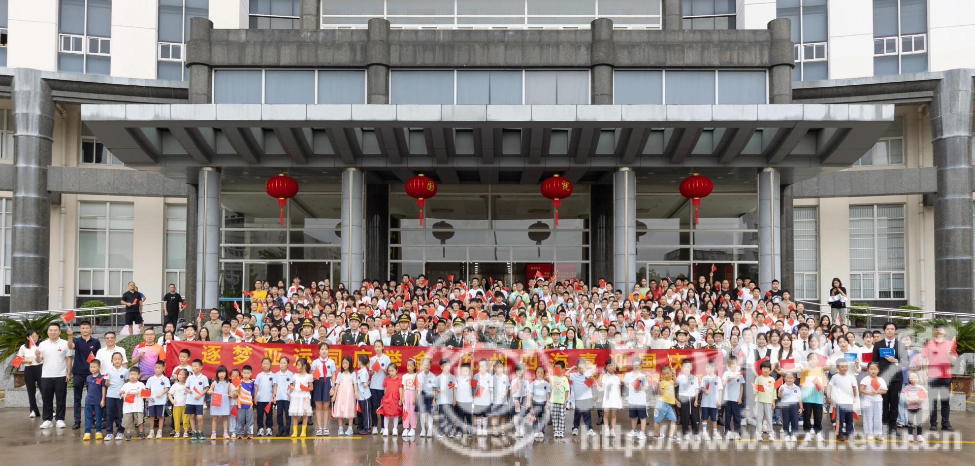 “同一片大海和天空,同迎着黎明和繁星,同样的向往和憧憬,同圆我们一个梦……”温大“小青荷”亚运志愿服务队、退役大学生、国旗护卫队的代表们共同唱响亚运会主题曲《同爱同在》,一起感受同心同创、同力共赢、同向未来的力量。