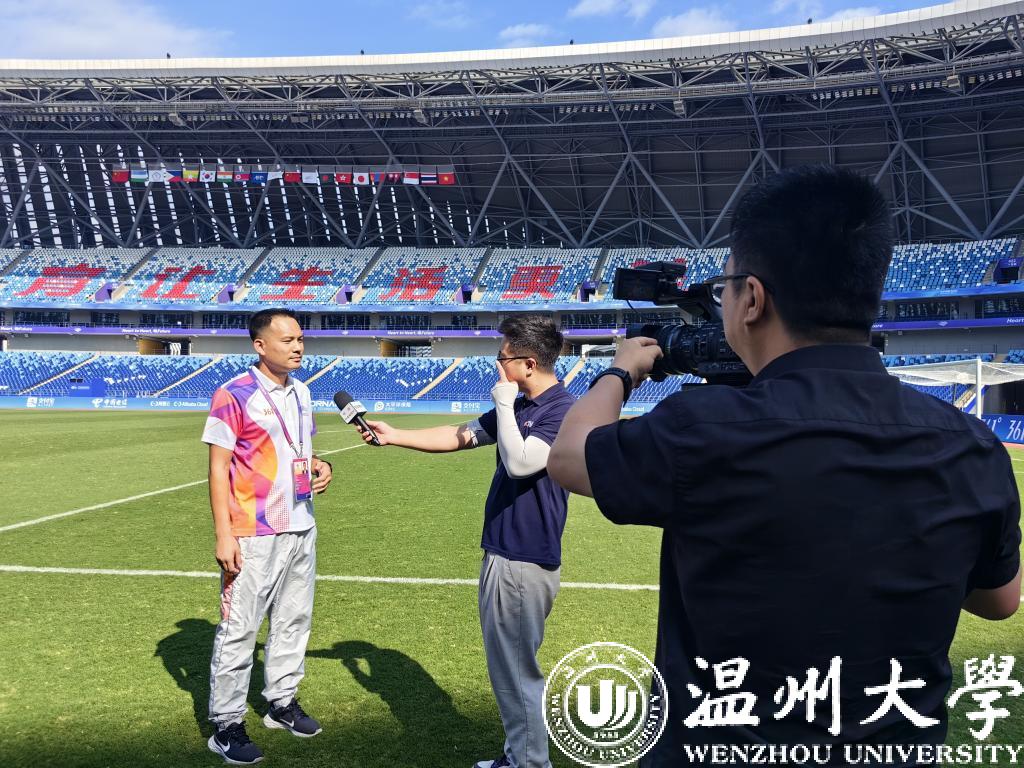 10月2日,温州奥体中心场馆群竞赛技术运行主任、我校体育与健康学院副教授林辉老师在温州奥体中心接受央视“亚运1+1”栏目的专访,解答杭州亚运会女子足球1/4决赛比赛过程中因暴雨雷电天气中断的应急预案。
