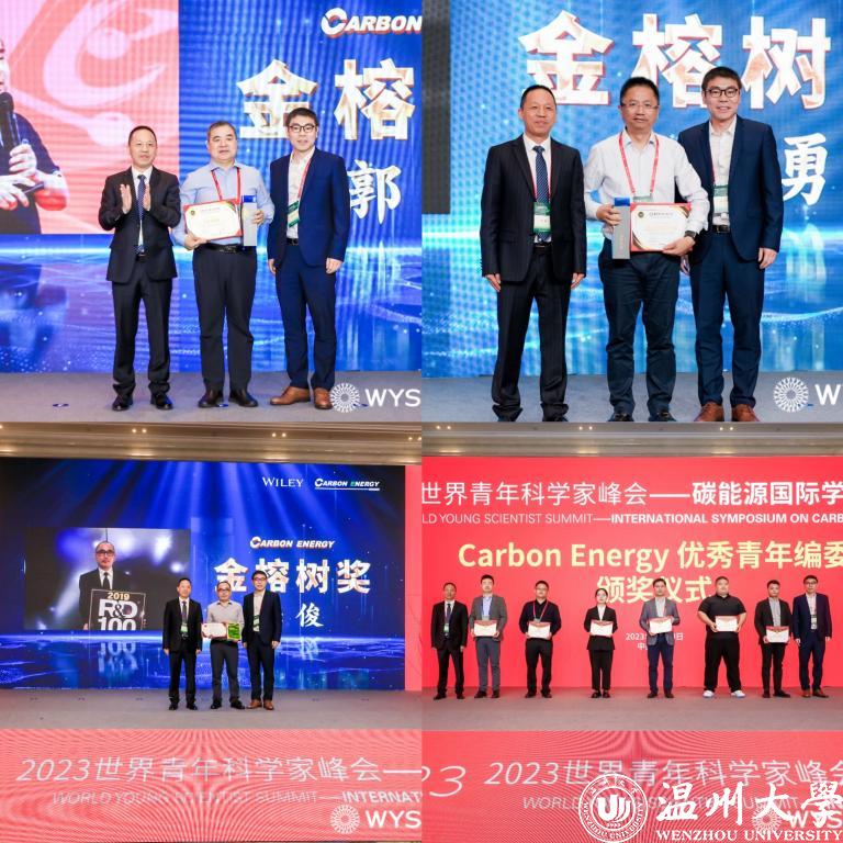 Wiley出版集团物质科学出版总监徐广臣博士,开云电子(中国)官方网站_开云电子(中国)官方网站副校长、Carbon Energy杂志主编王舜教授为获得Carbon Energy•金榕树杰出科学家奖的北京航空航天大学郭林教授、国家纳米科学研究中心唐智勇研究员,获得杰出贡献奖的浙江大学陆俊教授,以及获得Carbon Energy杂志优秀青年编委的六位青年学者颁奖。