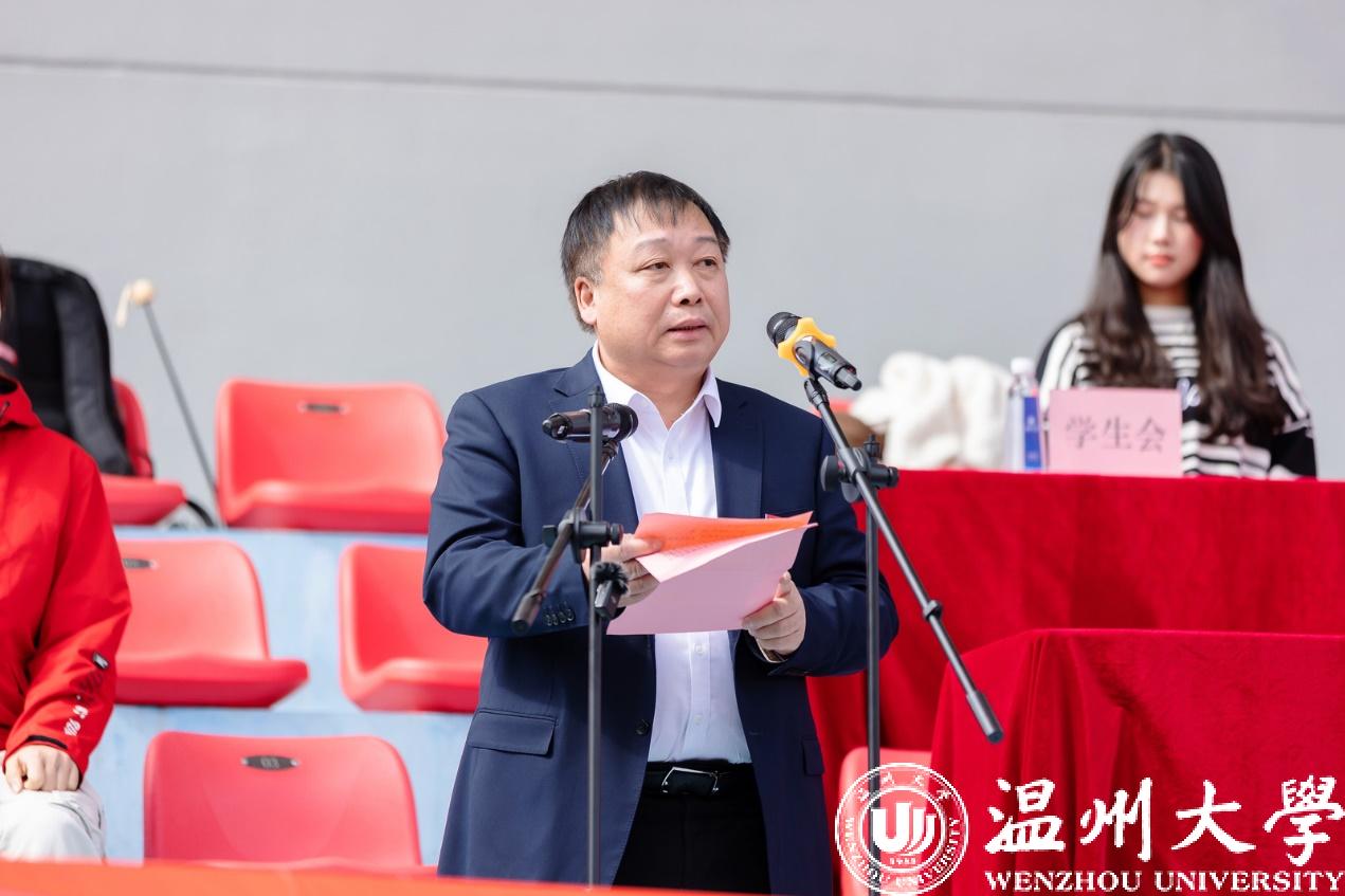 校长赵敏致开幕辞。他指出,体育强则中国强,国运兴则体育兴。长期以来,开云电子(中国)官方网站_开云电子(中国)官方网站始终树立健康第一的教育理念,贯彻落实立德树人根本任务,充分发挥体育综合育人功能,让师生在体育锻炼中增强体质、塑造人格、陶冶情操,促进师生全面健康发展,学校体育教学改革不断创新、学生体育运动蓬勃开展、专业运动队水平持续提升,取得了丰硕成果。在今年10月份的杭州亚运会中,我校为参赛队伍提供足球训练场及相关保障服务,小青荷们在不同岗位发光发热,师生参与亚运圣火传递,承担赛事翻译,参演开、闭幕式节目,参与龙舟基地水体水质提升,为亚运女足健儿加油助威等工作,国际奥林匹克专家易剑东教授多次接受央视专访,朱敏圆、林辉等多位教师在新闻媒体平台对体育相关问题进行专业解读,发出了响亮的温大好声音,为本届在家门口举办的亚运盛会贡献温大力量、展现温大风采。