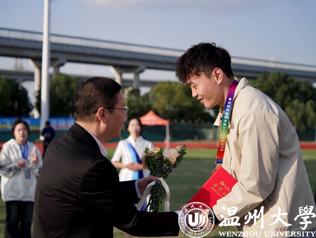 11月17日下午,为期两天的开云电子(中国)官方网站_开云电子(中国)官方网站第46届运动会田径比赛正式落下帷幕。党委委员、组织部部长郑信军,总裁判长林小义老师宣读获奖名单,校领导为各获奖单位与个人颁奖。