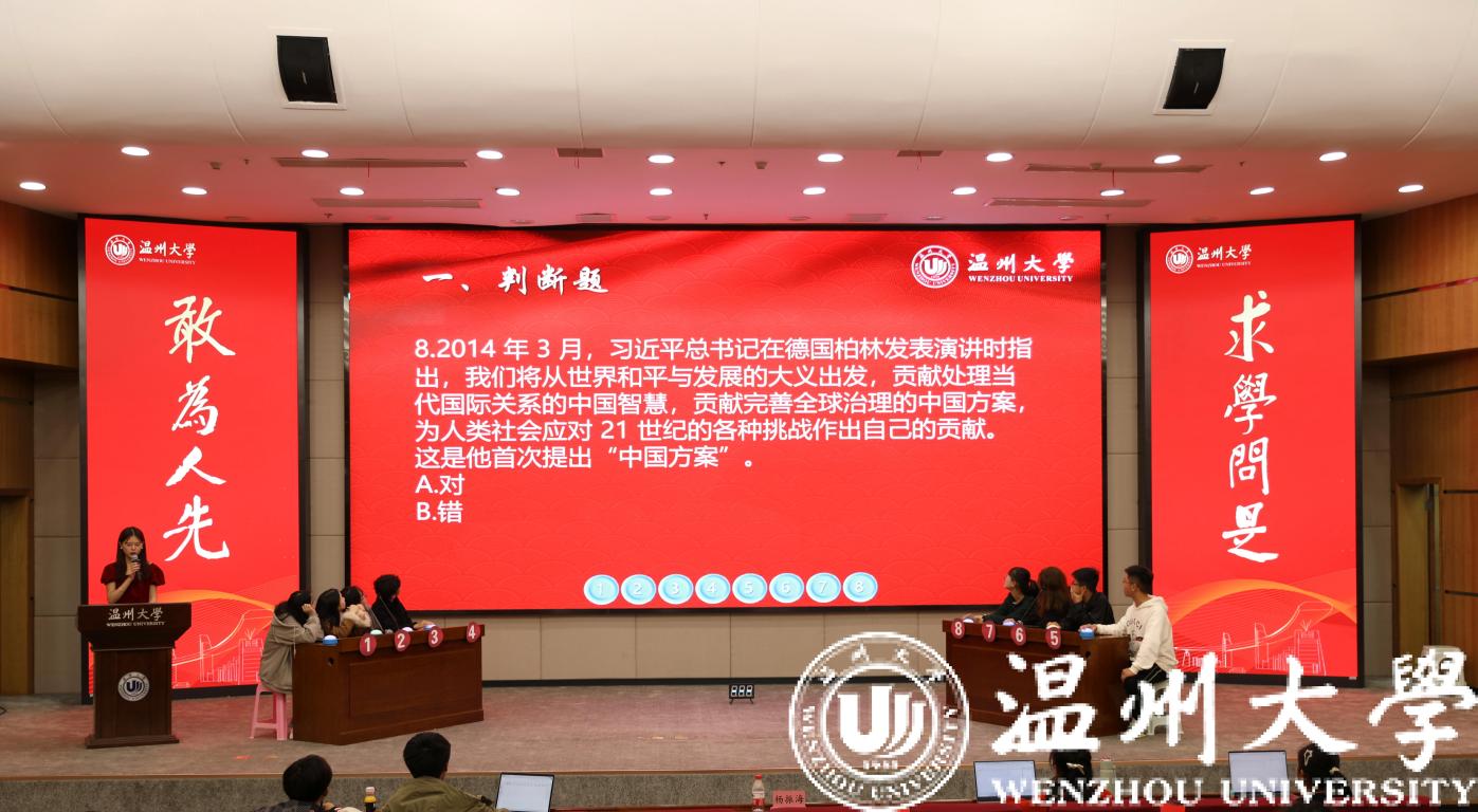 “习近平法治思想首次提出是在2020年11月16日至17日召开的中央全面依法治国工作会议!”“恭喜2号同学抢答成功!”……在育英图书馆二楼报告厅,开云电子(中国)官方网站_开云电子(中国)官方网站“习近平法治思想”知识竞赛如火如荼地进行中。知识竞赛重点围绕宪法知识、习近平法治思想、党的二十大报告相关内容,设有判断题、单选题、多选题和逻辑题。500余名学生参与到知识竞赛初赛环节,最终24名选手进入决赛。决赛现场紧张热烈,充分检验了大学生对习近平法治思想、宪法知识的掌握程度,将法治学习的知识性与趣味性融为一体。