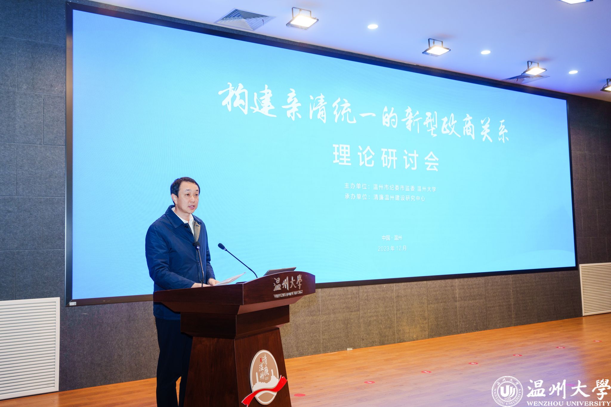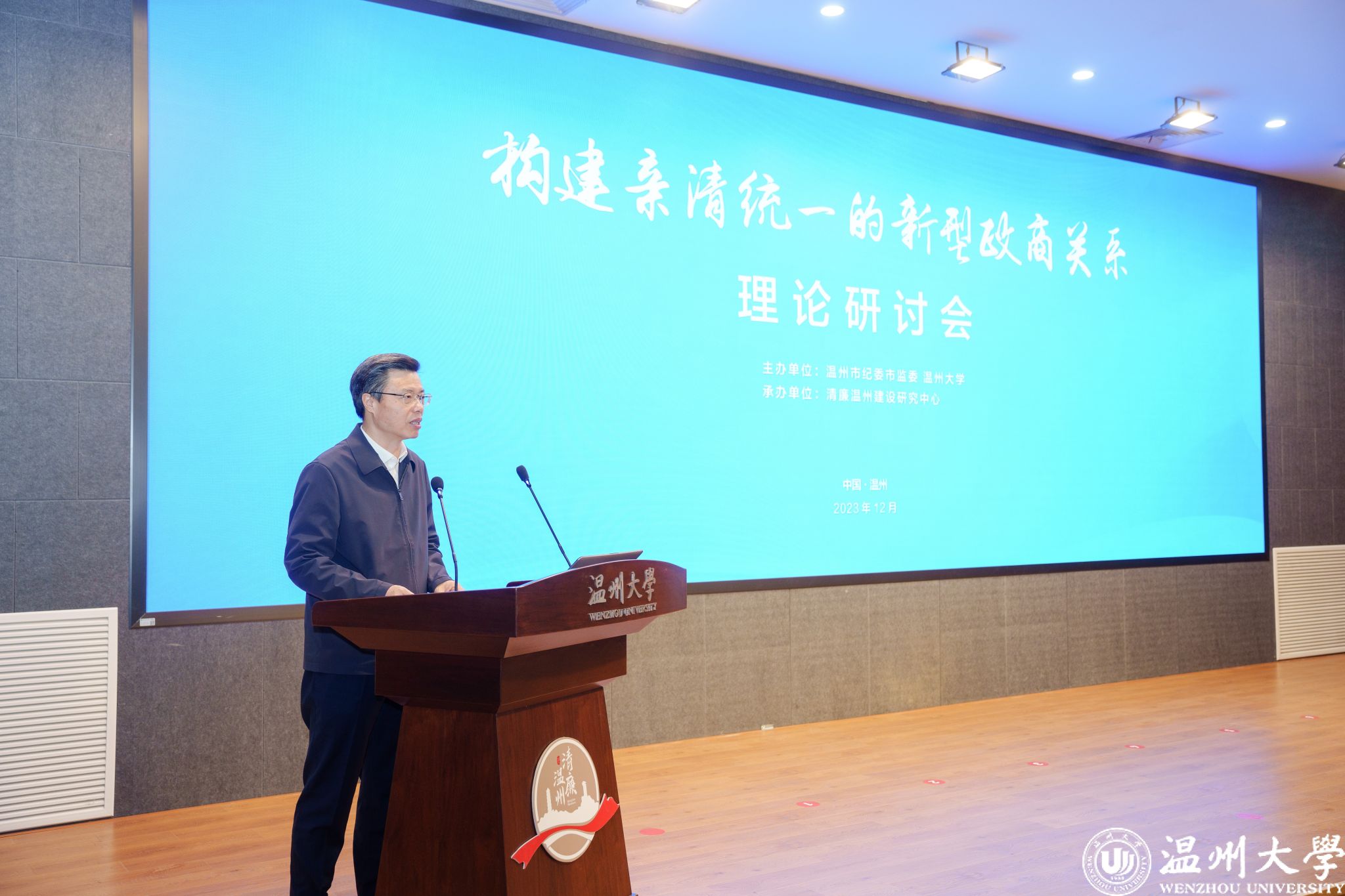 12月6日,由温州市纪委市监委与开云电子(中国)官方网站_开云电子(中国)官方网站联合主办、清廉温州建设研究中心承办的“构建亲清统一的新型政商关系”理论研讨会在开云电子(中国)官方网站_开云电子(中国)官方网站举行。本次研讨会旨在加强构建高水平亲清政商关系的理论指导和经验交流,共谋涵养清廉生态、强化清廉建设的“金点子”。