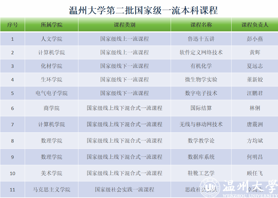 6月12日,教育部发布了《关于公布第二批国家级一流本科课程认定结果的通知》,我校11门课程被认定为第二批国家级一流本科课程,获认定课程总数位居全省第四(不含浙大)。截至目前,我校国家级课程总数达29门,其中国家级一流本科课程总数达19门,全覆盖教育部五大“金课”类型,学校优质资源建设再上新台阶。学校将继续以课程质量建设为重点,打造出更多具有高阶性、创新性、挑战度的“金课”,全面构建具有温大特色的一流本科教育体系,切实推动学校本科教学的内涵式建设和高质量发展。