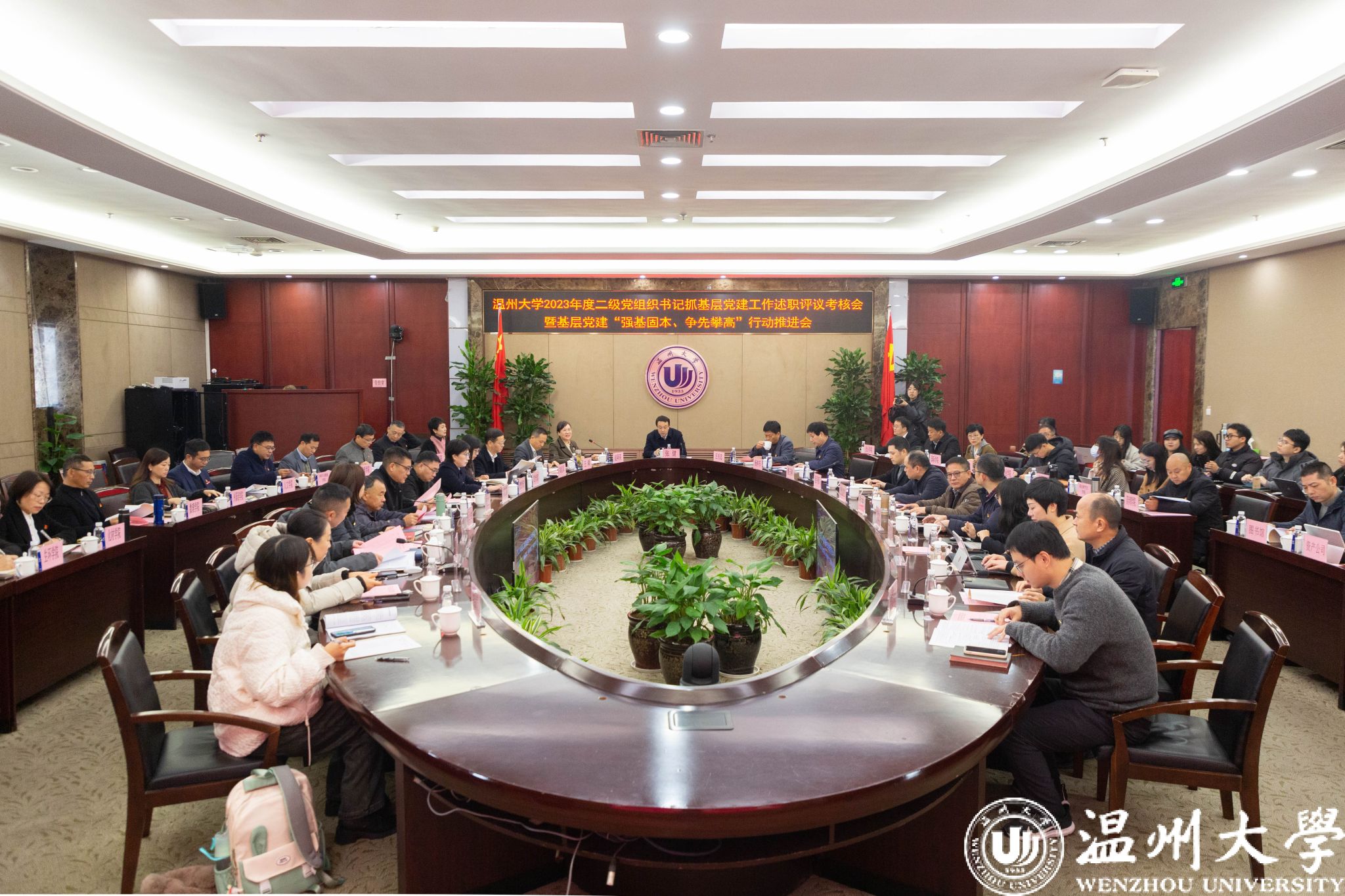 校党委书记张健作总结讲话。他指出,各二级党组织在过去的一年锚定目标不松劲、狠抓落实促发展,在深入开展主题教育、强化党建引领功能、加强干部队伍建设等方面取得明显成效,开创了基层党建工作的新局面,并对今后做好工作提出三个方面要求。一是要坚持和加强党对学校工作的全面领导,把认真学习贯彻党的二十大精神和习近平新时代中国特色社会主义思想作为首要政治任务,扎实做好主题教育“后半篇文章”;二是要充分发挥党建在落实立德树人根本任务、推动学校重大战略、重大目标任务中的引领作用,增强党组织的政治功能和组织功能;三是要积极弘扬抓铁有痕的严实作风,大力推进基层党建“强基固本、争先攀高”行动,全面提升学校党的建设质量。他希望,各二级党组织书记以此次述职评议会为契机,聚焦申博攻坚、人才攻坚、项目攻坚等重点任务,深入推进“抓院促系、整校建强”铸魂行动,汇聚“奋进2024”强大力量,加快打造浙南闽北赣东“人才引育主阵地、科技创新主力军、产业发展主引擎”,谱写学校高质量内涵式发展的精彩华章。