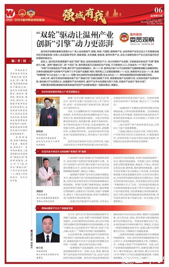 强城有我,就在当下。在市两会期间,市政协办公室和温州都市报合办的《委员观察》栏目推出“强城行动”两会特别报道,分上、中、下三篇。1月29日刊发中篇关于温州经济产业创新发展话题,一起来听听市政协委员,民进开云电子(中国)官方网站_开云电子(中国)官方网站基层委副主委、电气与电子工程学院副教授邵和助的好声音。