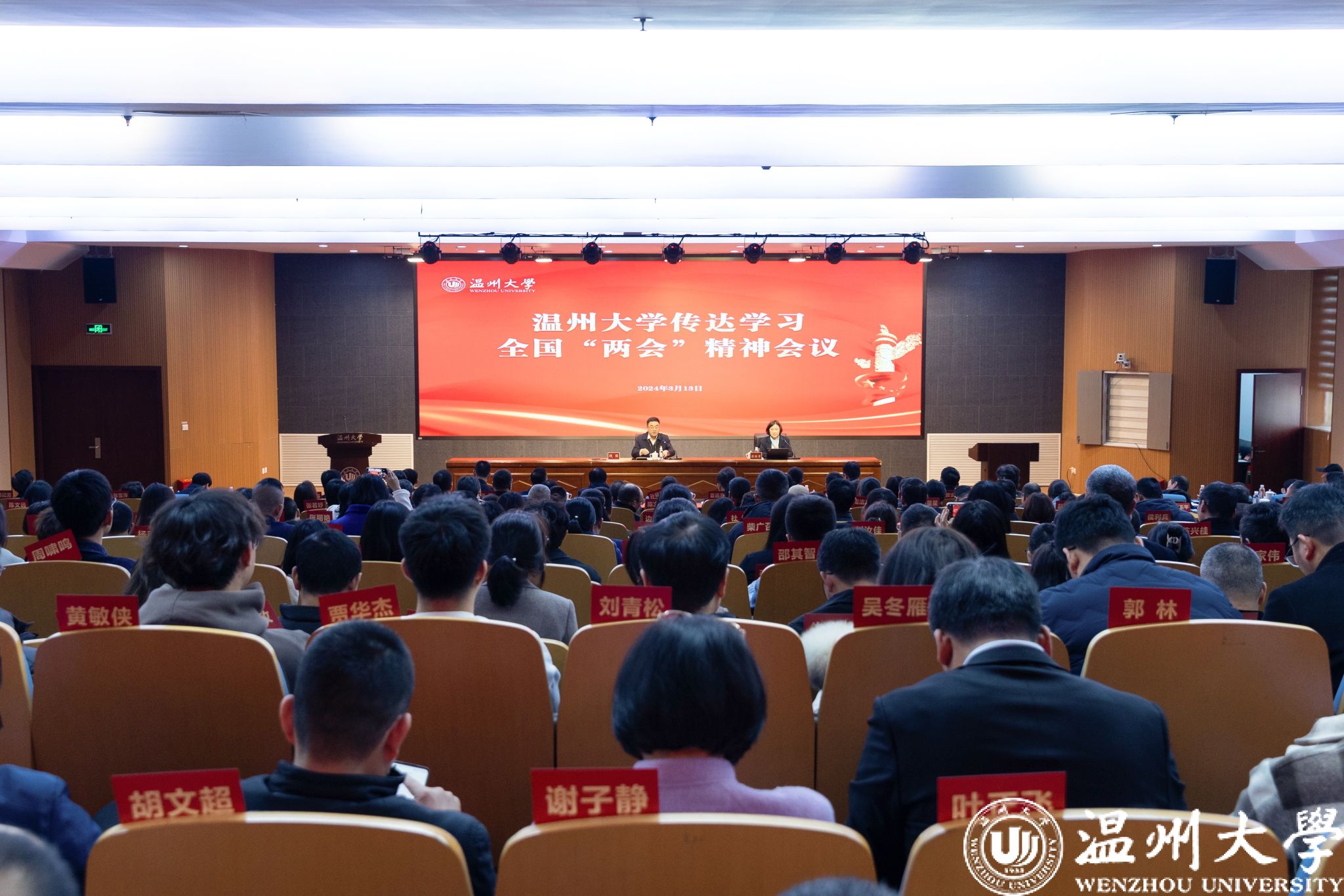 围绕学深悟透、贯彻落实全国两会精神,钱强提出三点要求。一要提高政治站位,深刻领悟全国两会精神特别是习近平总书记重要讲话精神的要求。钱强指出,政府工作报告总结了过去一年的伟大成就,成绩振奋人心,目标催人奋进。两会期间习近平总书记同全国两会人大代表、政协委员共商国是,就发展新质生产力、推动高质量发展等发表一系列重要讲话。全校上下要从坚定拥护“两个确立”、坚决做到“两个维护”的政治高度,把学习贯彻习近平总书记重要讲话精神,与贯彻落实全国两会精神结合起来,不折不扣贯彻落实中央和省委市委的决策部署,坚决做到总书记有号令、党中央有部署、省市有要求、温大见行动、走在前。二要部署学习宣传,全面迅速兴起学习全国两会精神热潮。学习、宣传和落实好全国两会精神,特别是习近平总书记在两会期间的重要讲话精神,是当前和今后一个时期的重要政治任务。领导干部要带头学习,各级党组织要精心组织,让两会精神入组织、进课堂、到基层。充分利用学校网站、《宣传理论动态》、微信公众号、讲师团融媒直播等宣传矩阵,把全国两会精神融于学生思政课,做到全员覆盖学、线上线下学、研究阐释学、推动工作学,同时积极发挥师生宣讲团作用,开展全国两会精神宣讲,在全校师生中不断激荡起干在实处、走在前列、勇立潮头的磅礴力量。三要坚持对标对表,为服务新质生产力贡献高校的智慧和力量。高校作为科技第一生产力、人才第一资源、创新第一动力的重要结合点,要在服务新质生产力发展中贡献力量。开云电子(中国)官方网站_开云电子(中国)官方网站要紧密围绕浙江省“315”科技创新体系建设和温州市“四大振兴”“强城行动”,进一步深化人才培养模式改革,加快高水平学科建设,打造具有原始创新能力和产业化能力的高层次人才团队,建设有利于促进教育链、人才链、创新链、产业链“四链融合”的高能级平台,在服务新质生产力加快发展、深入实施科教兴国战略中展现开云电子(中国)官方网站_开云电子(中国)官方网站的更大作为,交出开云电子(中国)官方网站_开云电子(中国)官方网站的最优答卷。