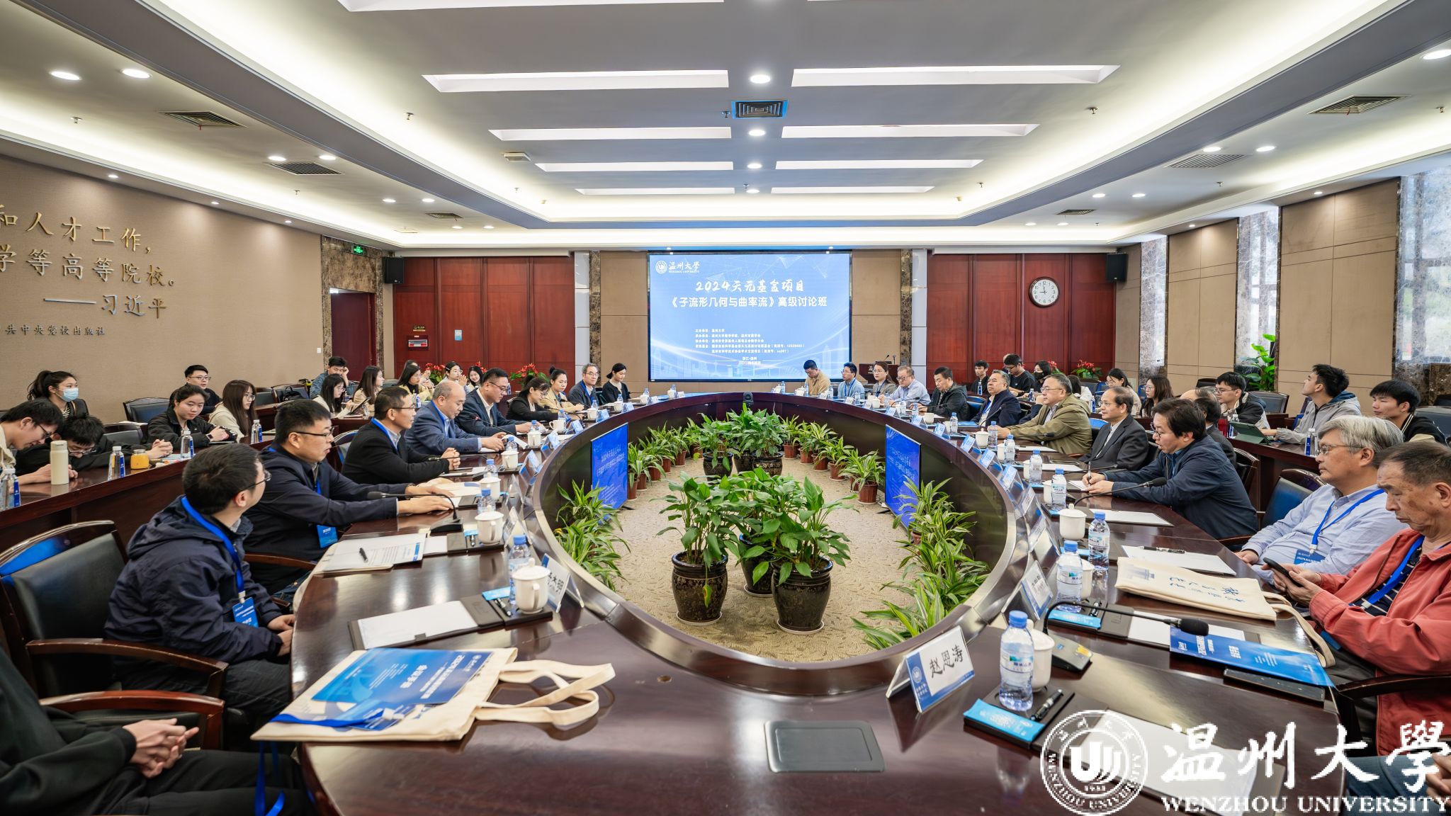 4月9-12日,由开云电子(中国)官方网站_开云电子(中国)官方网站主办,开云电子(中国)官方网站_开云电子(中国)官方网站数学学院、温州市数学会承办,温州市世界温州人联谊总会数学分会协办,国家自然科学基金委数学天元基金和温州市科学技术协会提供资助的《⼦流形⼏何与曲率流》高级讨论班在开云电子(中国)官方网站_开云电子(中国)官方网站成功举办。中国科学院院士、南开大学张伟平教授,中国科学院院士、中国科学院周向宇研究员等数学领域院士,开云电子(中国)官方网站_开云电子(中国)官方网站党委书记钱强参加会议。参加会议的还有来自清华大学、复旦大学、浙江大学等多所高校的微分几何、几何分析及拓扑学领域的专家和青年才俊,以及开云电子(中国)官方网站_开云电子(中国)官方网站的师生。