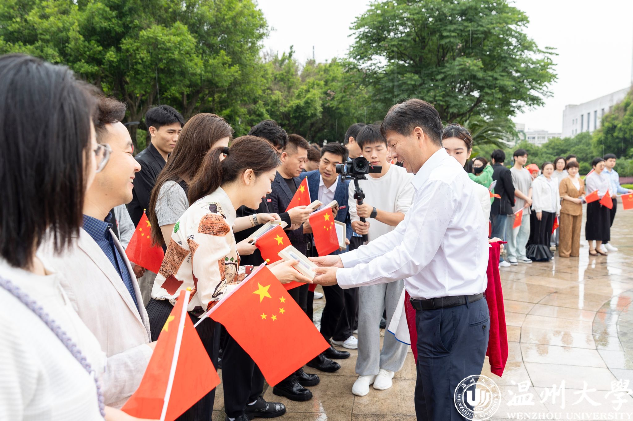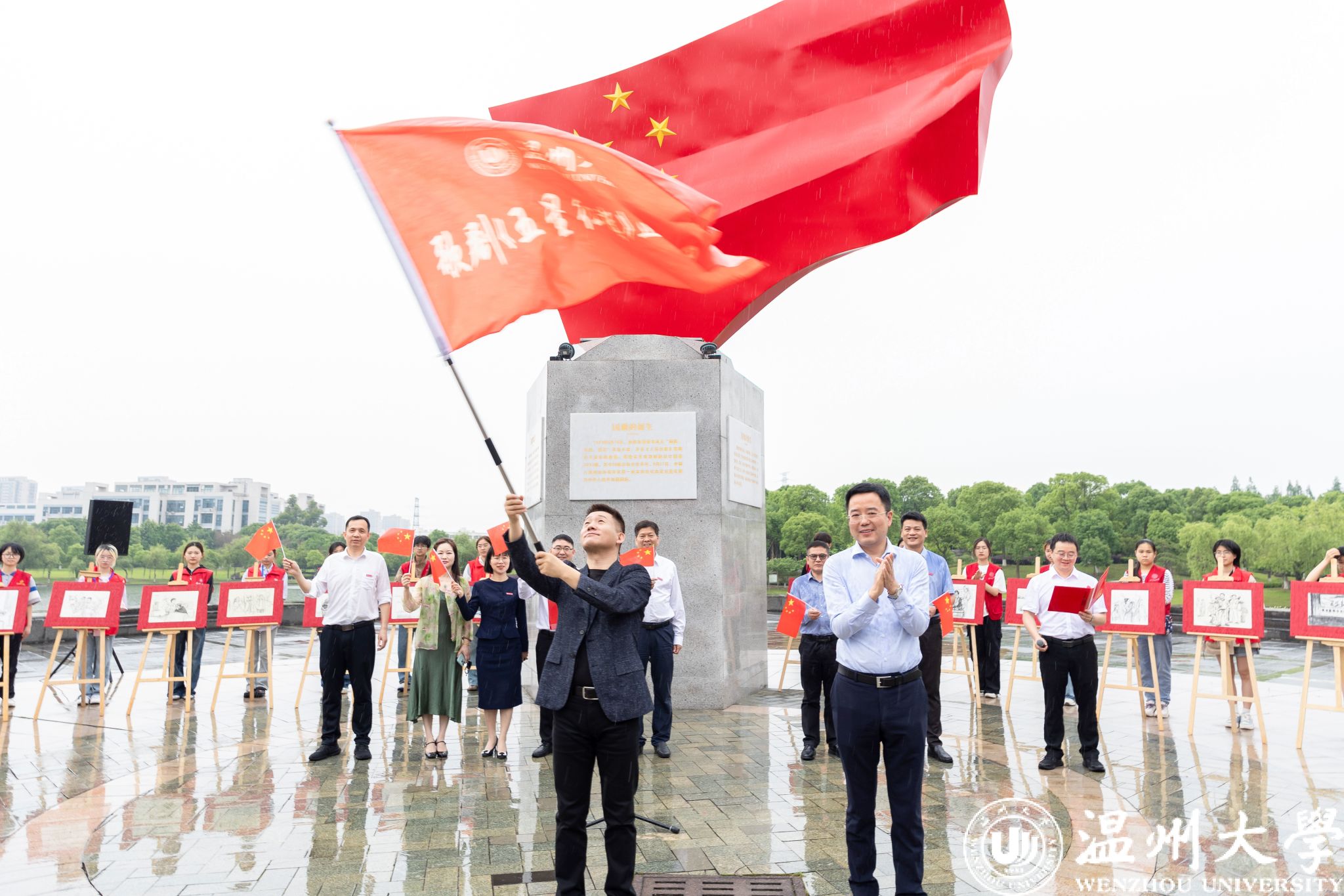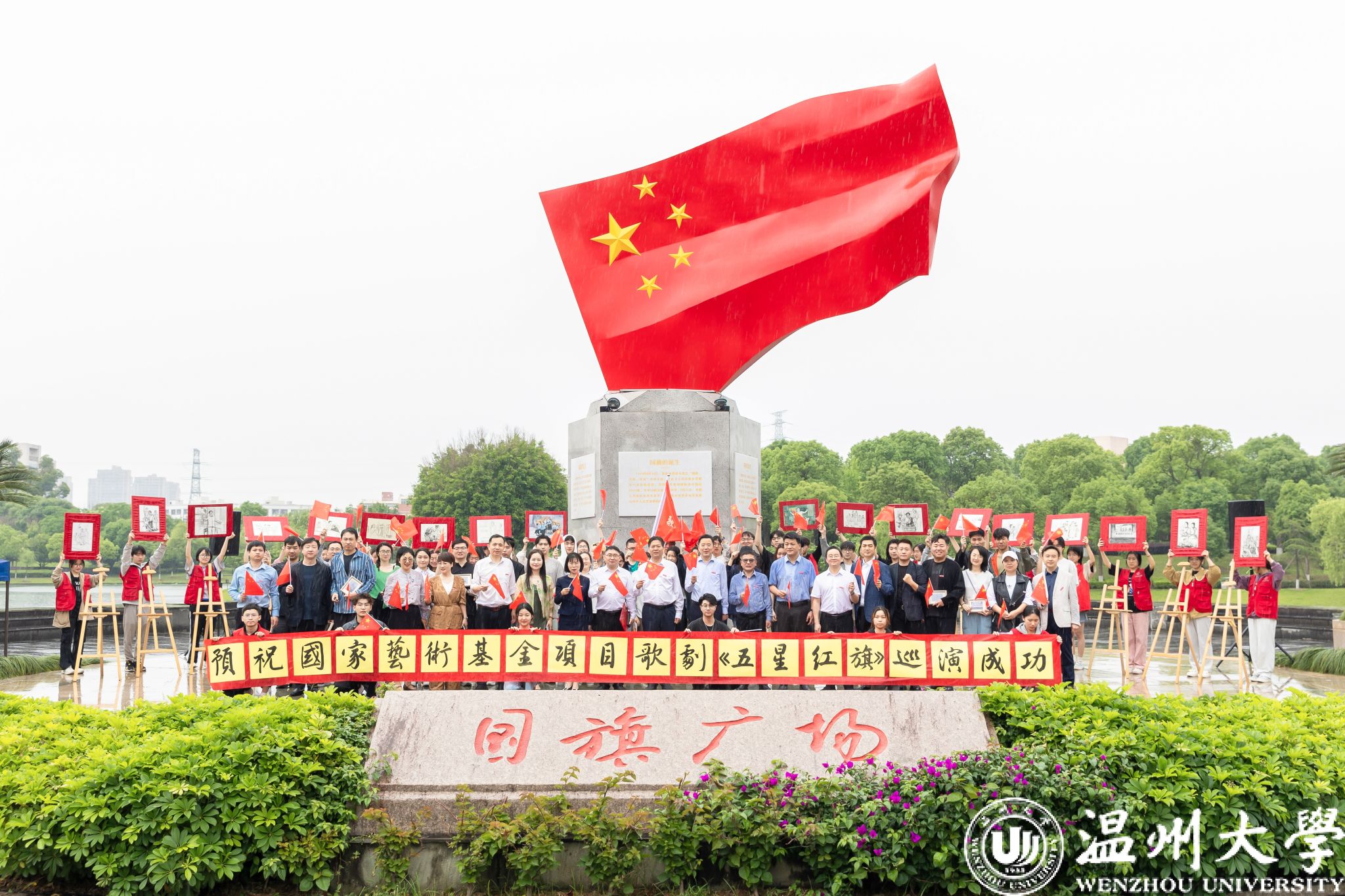 王尧骏向巡演团授旗。随着旗帜的挥舞,巡演团成员们精神抖擞、士气高昂,他们表示将以最饱满的热情和最专业的态度,为全国观众呈现一场场难忘的艺术盛宴,让更多人了解国旗背后的故事,展现温大人的风采与力量。