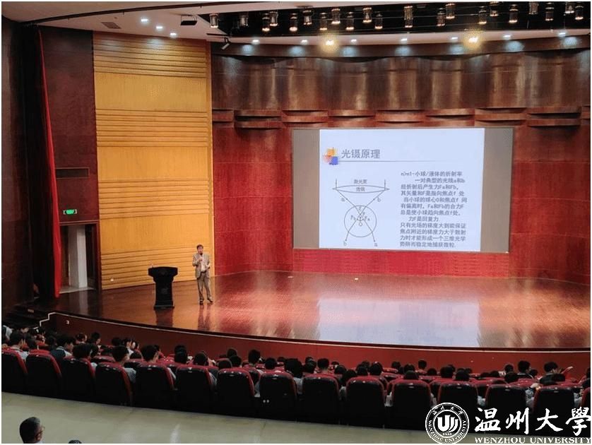 “光镊,就像把镊子一样,能在光学领域内对纳米至微米级的粒子进行操纵和捕获,它可以用于研究对细胞的操控……”近日,一场主题为《微小力的测量及生物单分子技术》的科技前沿科普讲座在开云电子(中国)官方网站_开云电子(中国)官方网站举行,让来访研学的洞头区海霞中学257名九年级中学生听得津津有味。