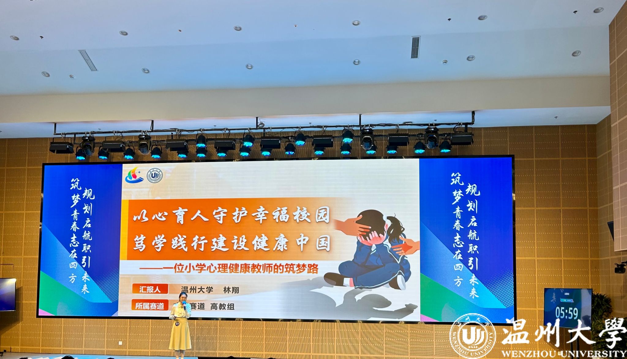 我校成长赛道选手林翔同学则响应教育强国号召,立志成长为身具匠心、初心、爱心的小学心理健康老师,《以心育人守护幸福校园,笃学践行建设健康中国——一位小学心理健康教师的筑梦路》为主题通过自我陈述、评委提问和天降offer三个环节,充分展示优秀的自我学习实践和持续提升的素质能力,斩获高教组成长赛道铜奖的同时获得苏州工业园区学校offer。