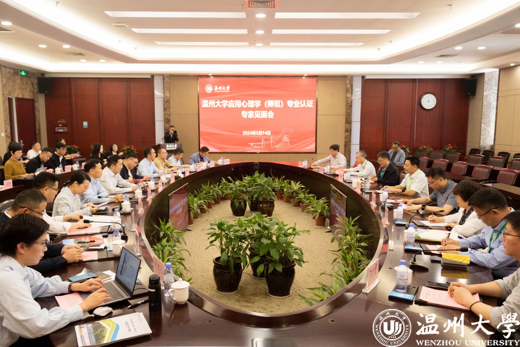 5月14日上午,我校举行应用心理学师范类专业第二级专业认证专家见面会。出席会议的认证专家组由湖州师范学院副校长舒志定教授为组长,东北师范大学刘晓明教授、北京联合大学汪艳丽教授、宁波大学郑春龙教授、江苏省新海高级中学韩金山教授等为专家组成员,省教育考试院薛玉刚担任项目管理员、朱红斌为项目秘书;浙江省教育考试院评估部张应敏主任出席会议;开云电子(中国)官方网站_开云电子(中国)官方网站副校长王尧骏,党校办等各有关职能部门的负责人、教育学院的领导和教师代表、其他承担师范生培养学院的相关代表参加见面会。