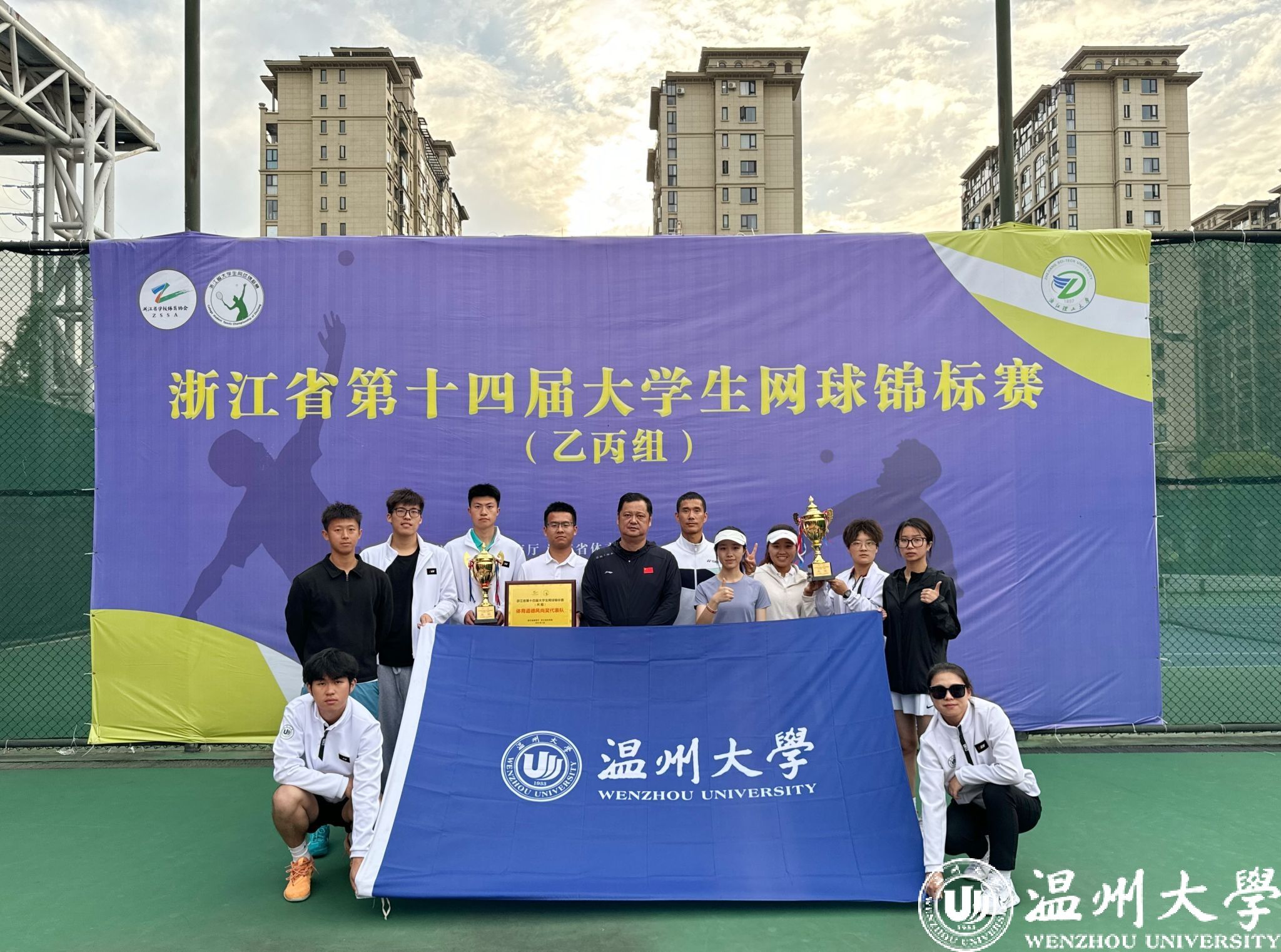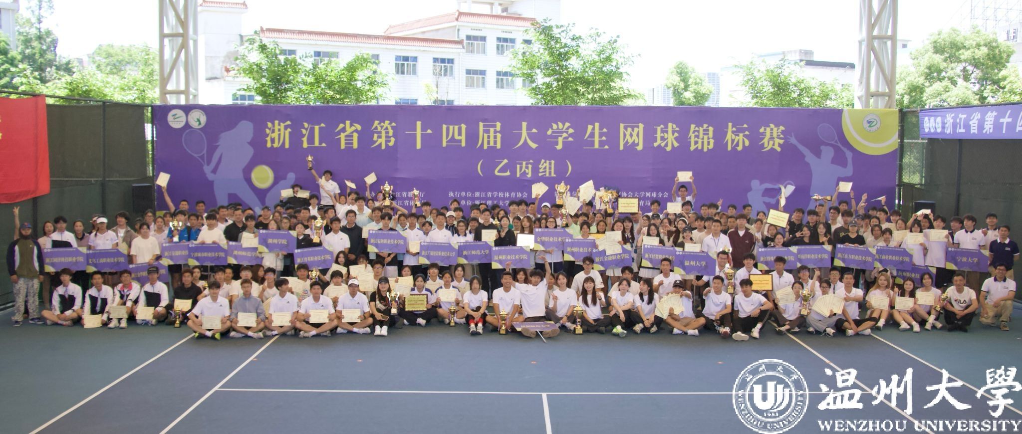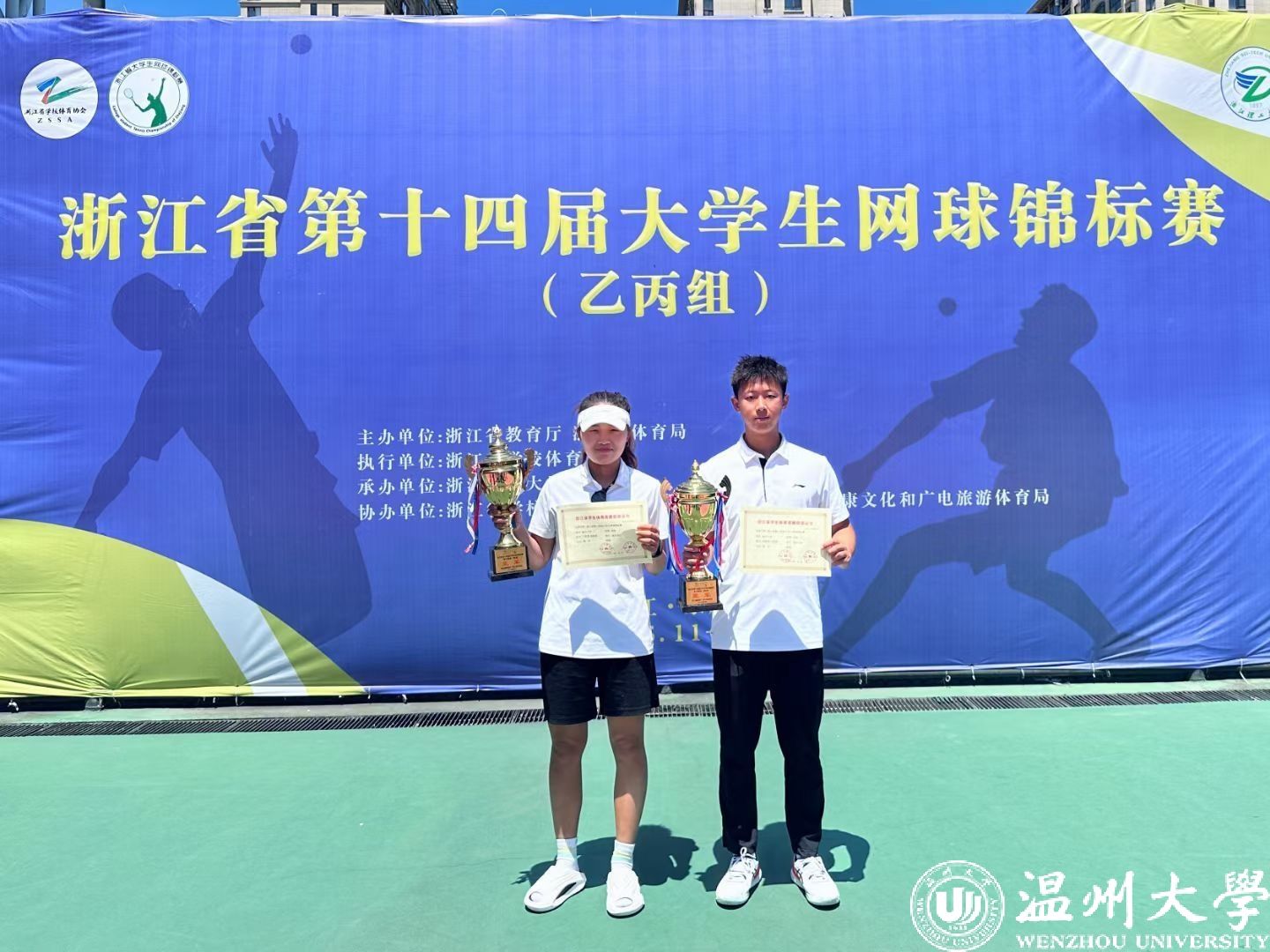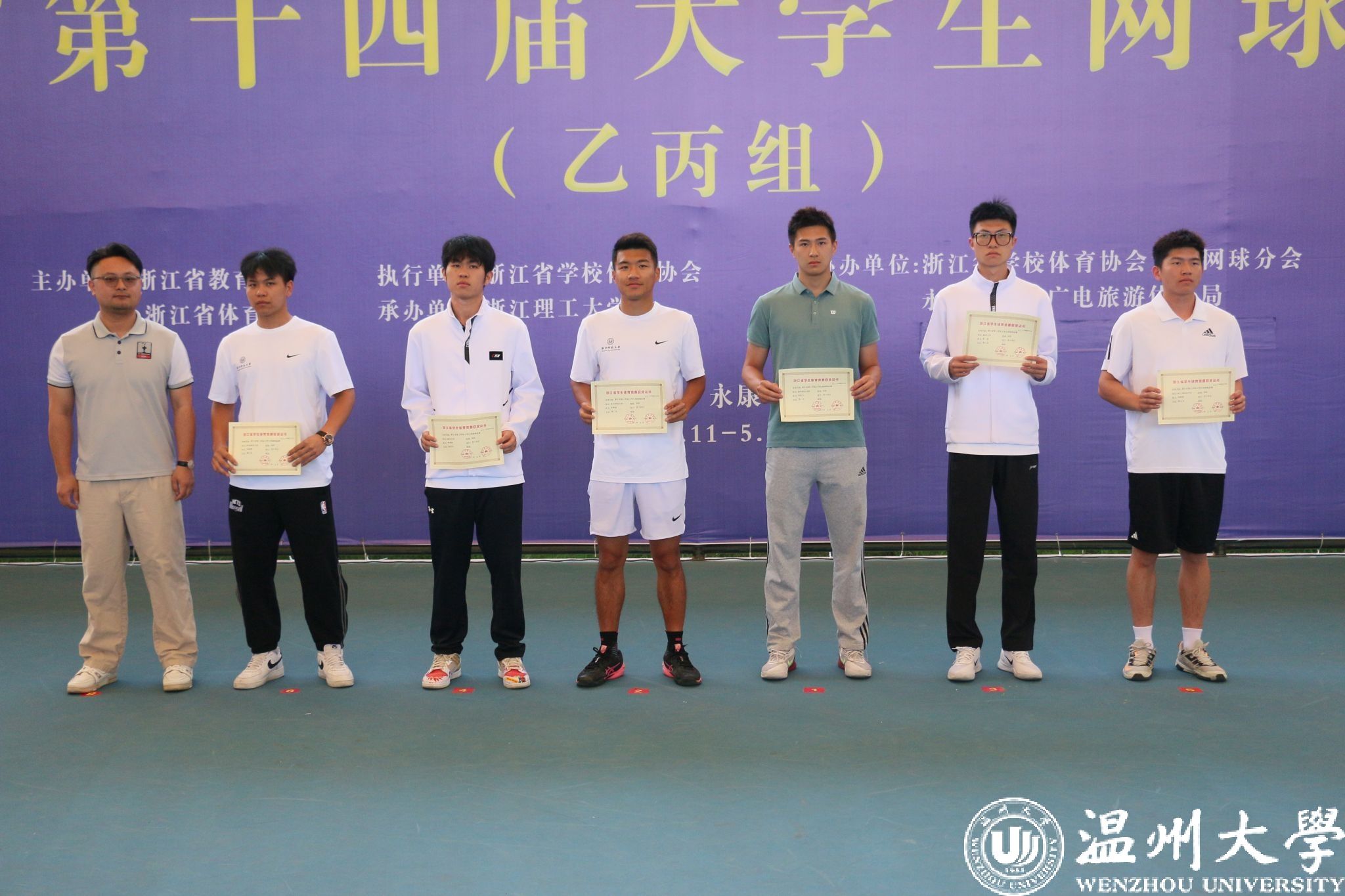 5月11—16日,由浙江省教育厅、浙江省体育局主办,浙江理工大学承办的浙江省第十四届大学生网球锦标赛(乙丙组)在永康市文体中心举行。经过激烈角逐,我校网球队荣获混合双打冠军,男子、女子团体亚军,男子单打、双打季军等8项成绩,队伍获“体育道德风尚奖”称号。