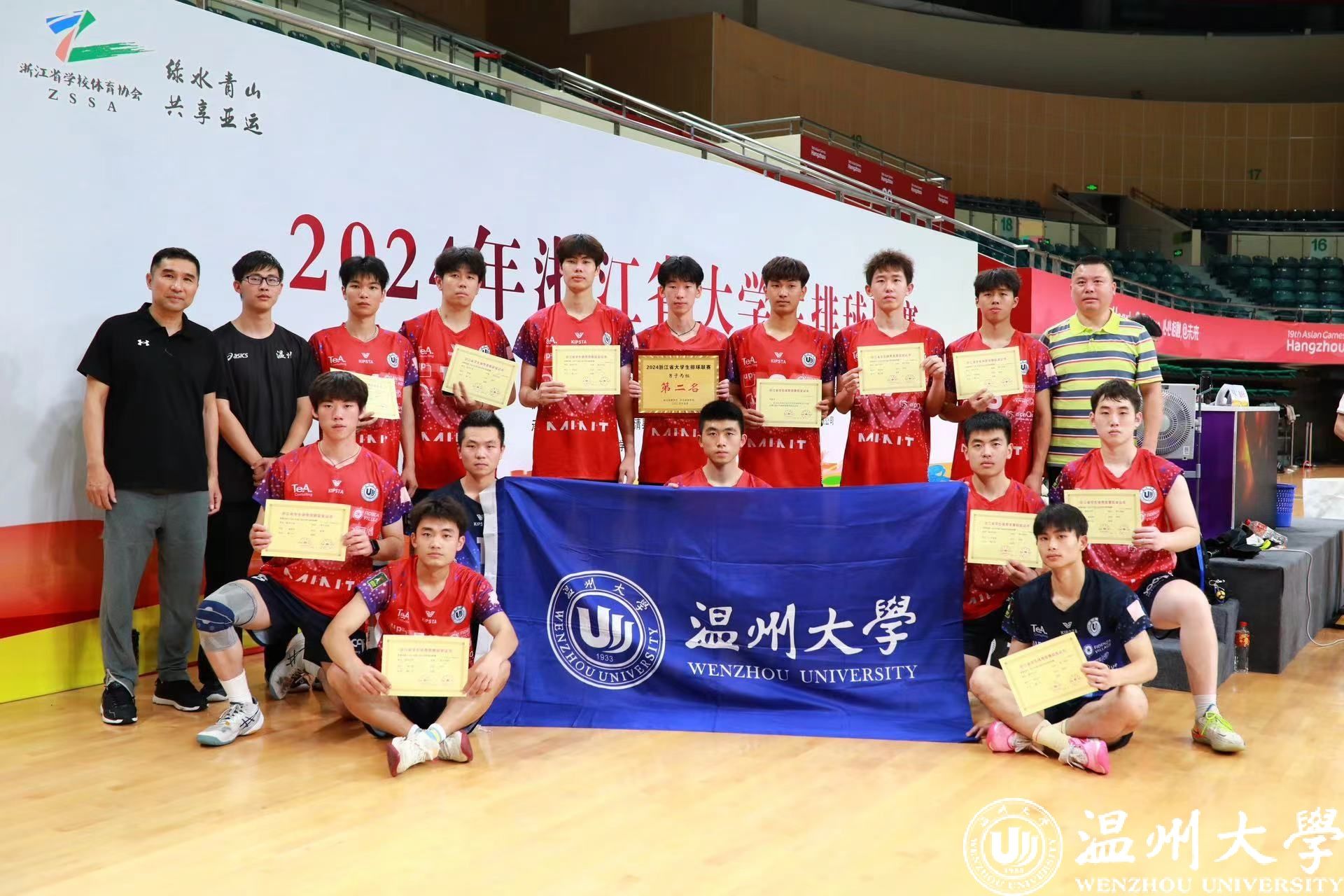 5月15日至20日,2024年浙江省大学生排球联赛(乙丙组)在湖州德清举行。我校男子排球队以6胜1负的战绩荣获亚军。2名队员获“体育道德风尚奖运动员”等荣誉称号。