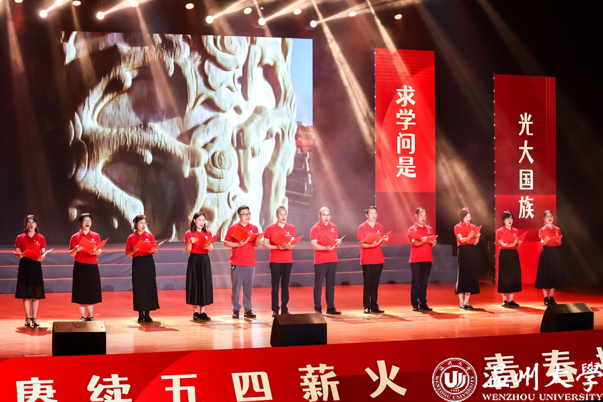 大赛尾声,马克思主义学院教师们进行了精彩的诗朗诵《我的祖国》。