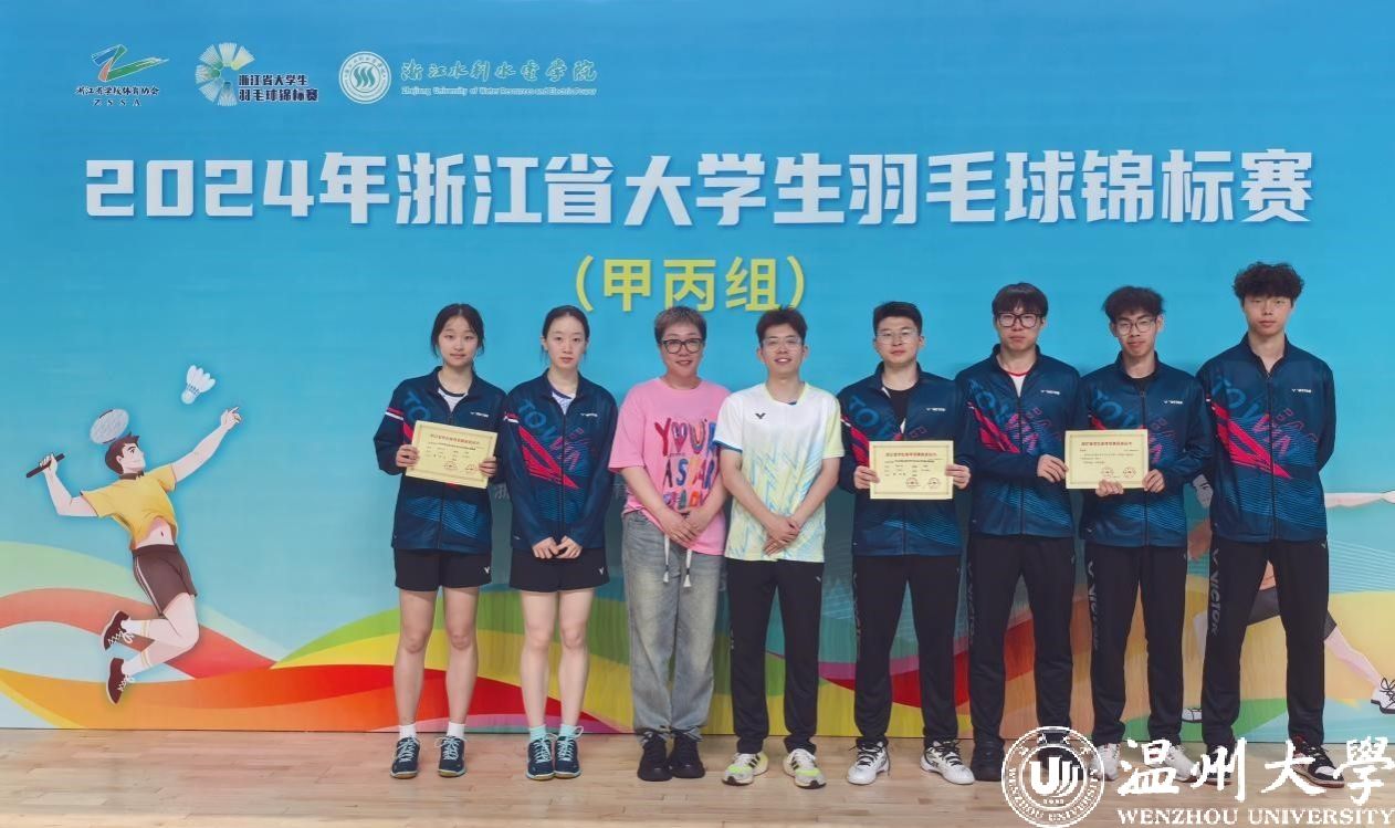 5月20日-25日,2024年浙江省大学生羽毛球锦标赛(甲丙组)在湖州南浔浙江水利水电学院落下帷幕,省内共50多所高校,500多人参加竞技。我校羽毛球队取得丙组男子单打第二、丙组女子单打第五、甲组女子单打第六的佳绩。