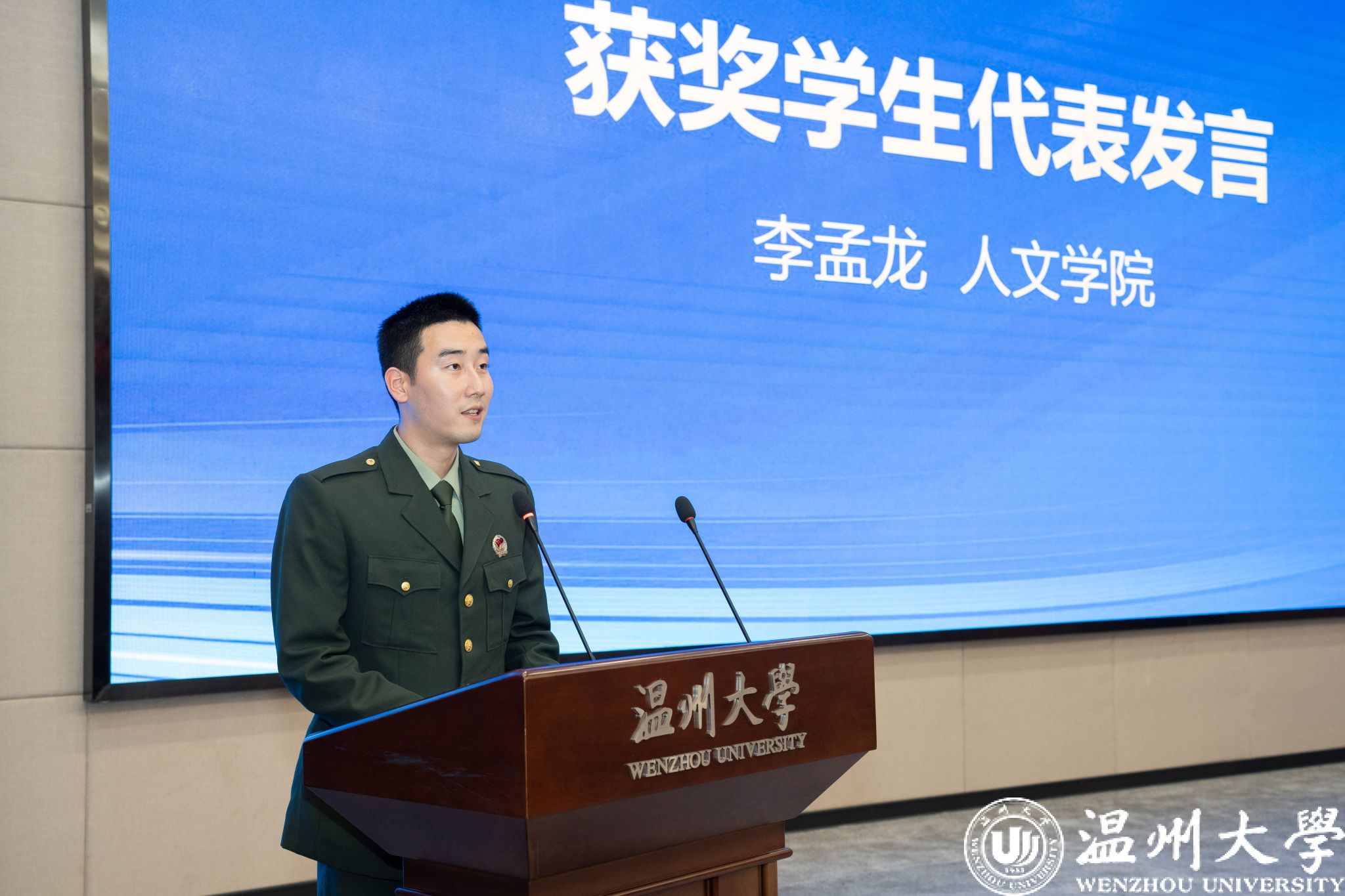 获奖师生代表围绕自身教学科研、学习成长、报国之志等方面做心得分享。电气与电子工程学院副教授施一剑老师表示所有获奖教师必将带着这份责任和使命以更加饱满的热情投入工作中,不忘初心,砥砺前行。数理学院舒璐莹同学表示将继续踔厉奋发、追求卓越,回报母校、回报社会。人文学院李孟龙同学号召同学们做有家国情怀的温大学子。